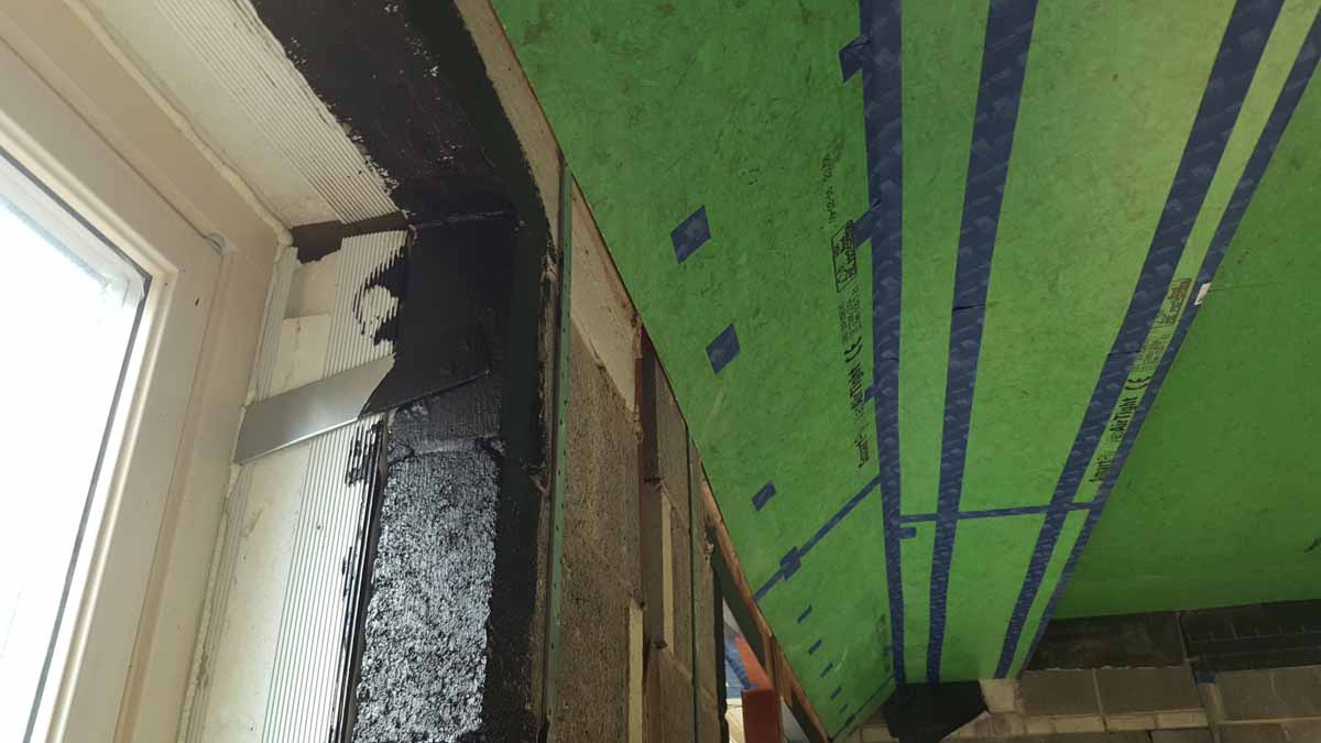 But significant remedial work was also required, and specialist airtightness contractor ECO DC was brought in to make sure the apartments met the passive house standard of 0.6 air changes per hour. As well as new taping the team also made liberal use of Blowerproof liquid airtight paint.