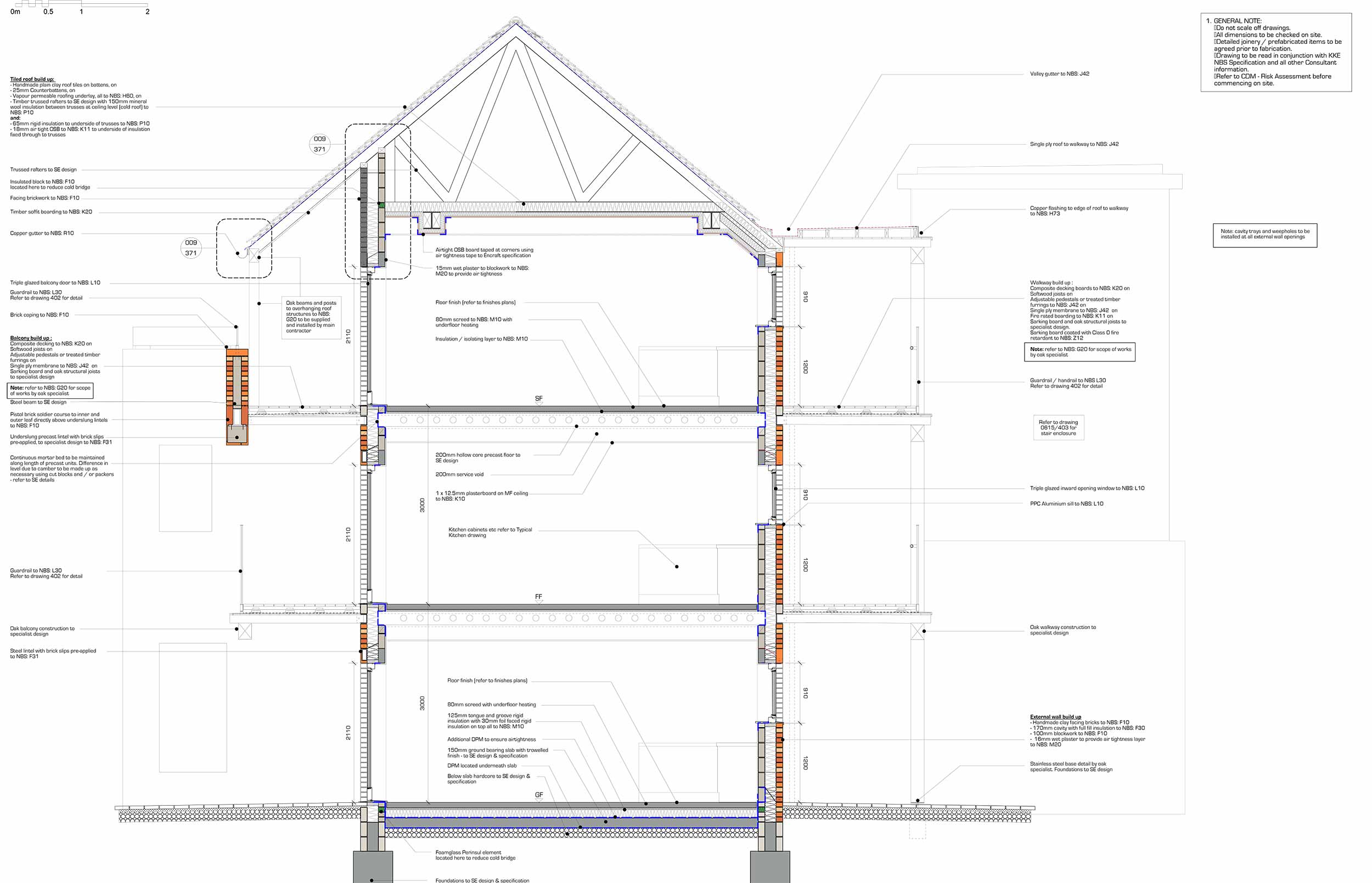 Thermal bridging: The cavity wall building achieved thermal bridge free design, with only a few thermally broken balcony connectors being modelled in the PHPP.