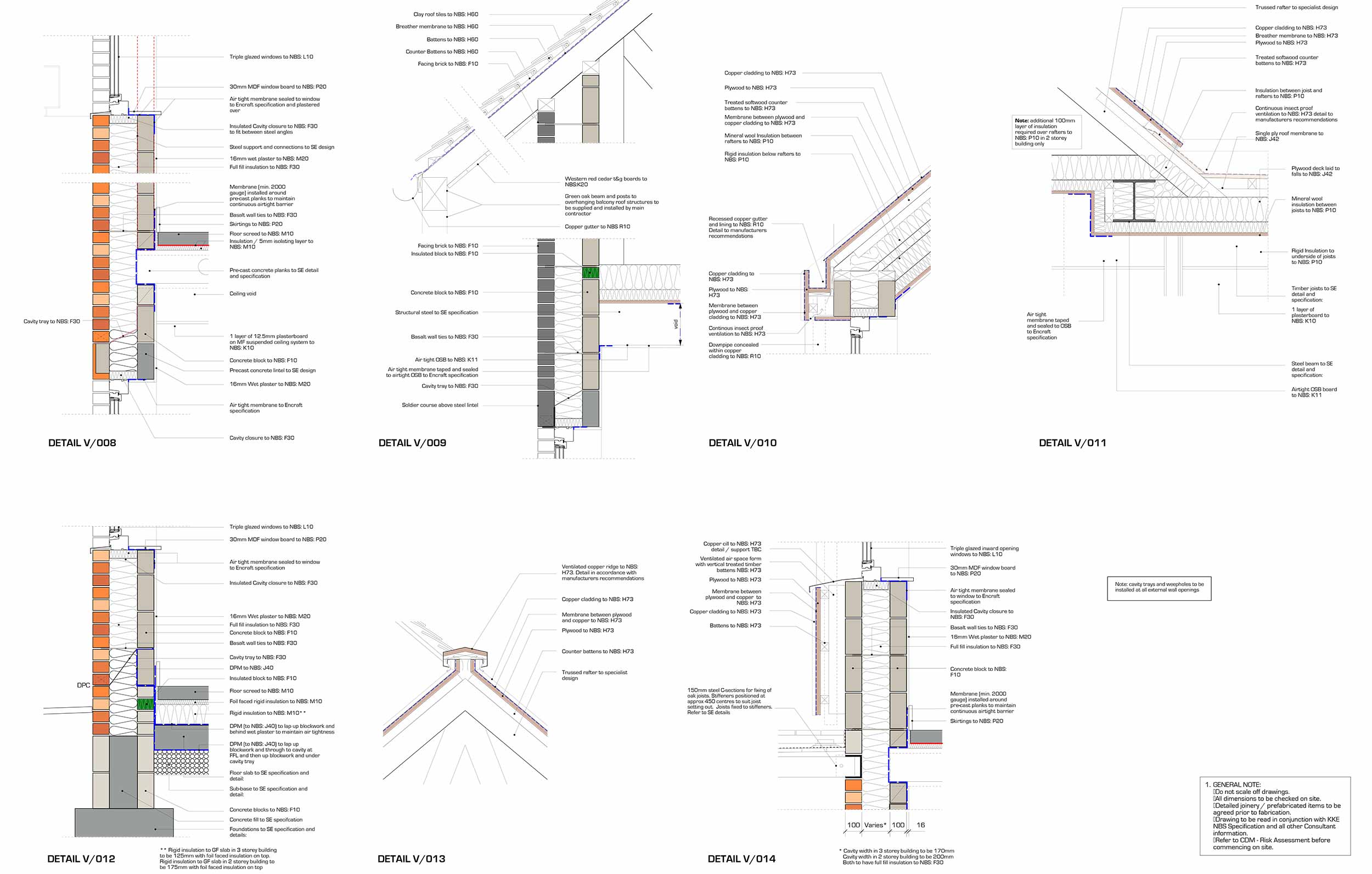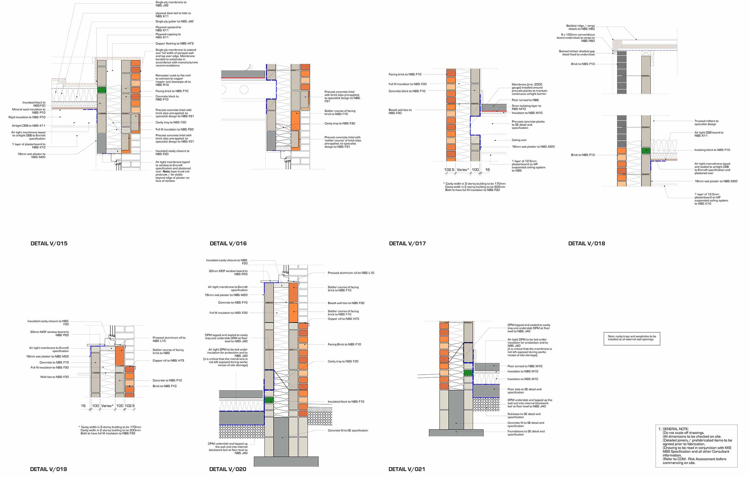 Window to external wall: Structural insulated cavity closers (Cavalok BigBlok) used to support windows. Double lintels used on inside and outside leaf to avoid thermal bridges.