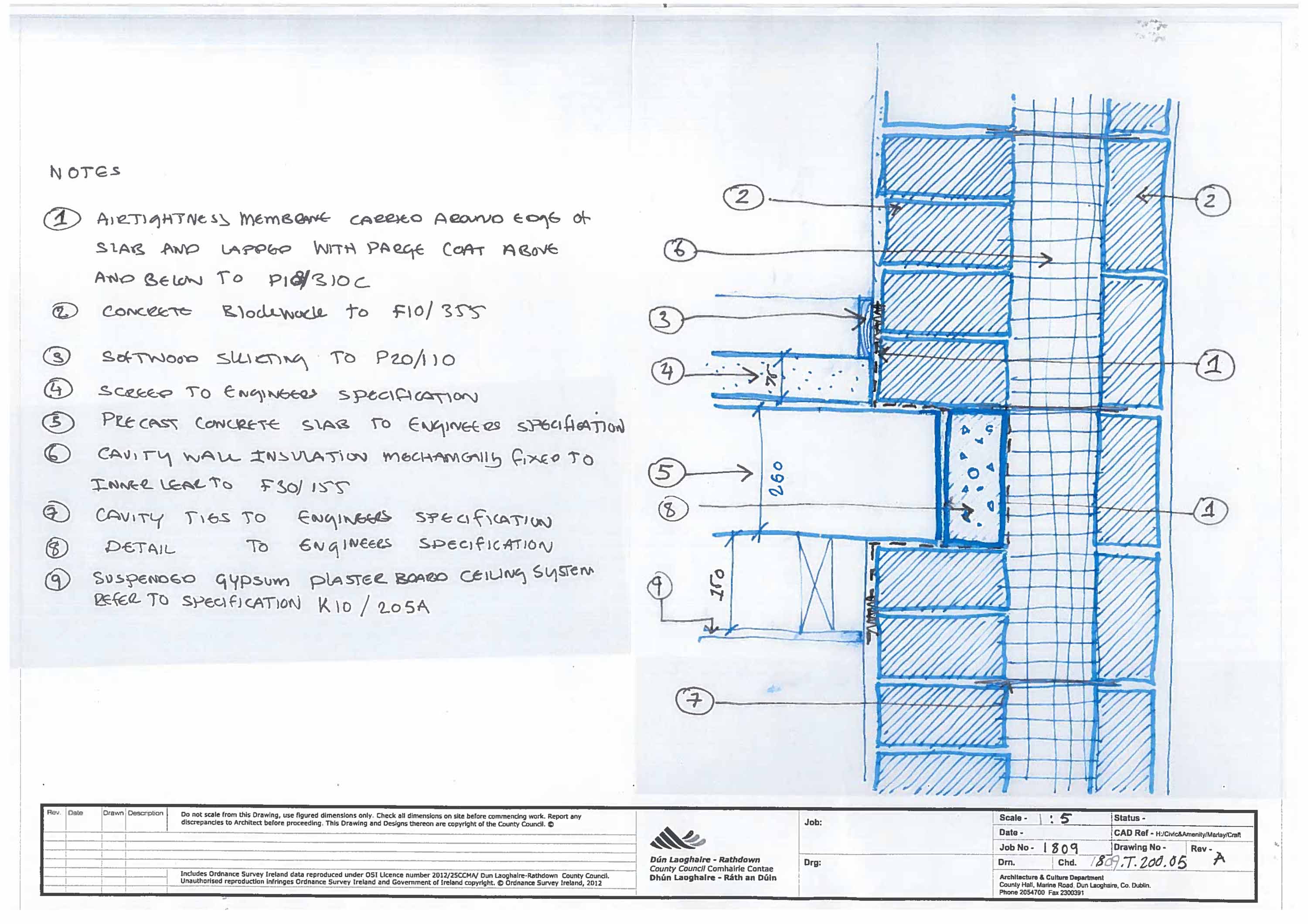 Thermal bridging: Several courses of Quinn Lite AAC blocks at and above subfloor; Cavalok BigBlok cavity closers; Isokorb thermal breaks at balconies. Y-value of 0.08 W/m2K used – as per Acceptable Construction Details.