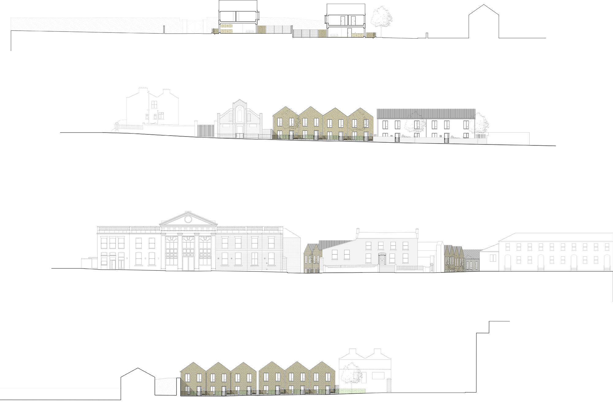 It was originally envisaged that the houses would be certified passive, and while they don’t quite meet certification thresholds, passive principles are embedded in the design.
