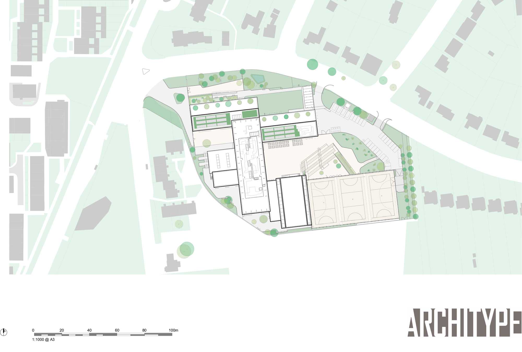 Sutton Council’s partnership with Architype is built on their shared commitment to sustainability. Architype have designed passive certified schools in Wolverhampton and Wales, and Sutton Council had already appointed them in 2014 to design the smaller Hackbridge Primary to the passive house plus standard. In January 2016, Sutton asked Architype to carry out a feasibility study for a large secondary school. At the end of the year, Architype submitted a planning application.