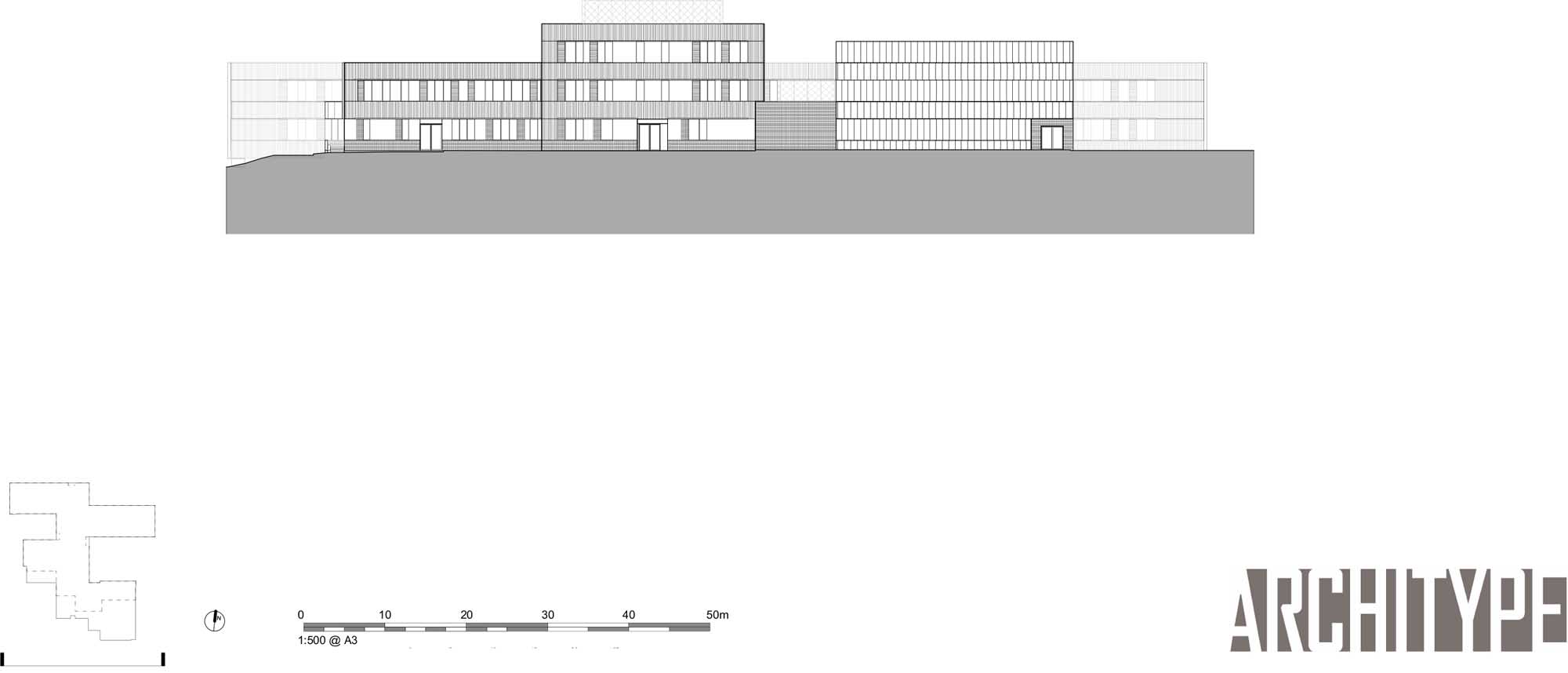 “We designed three iterations to deal with their concerns and finally got planning permission following consultations, revisions and public meetings, on 31 August 2017. The completed building steps down in scale to two storeys on the north side as it gets closer to the houses. It’s much less imposing now. And we’ve designed terraces with green planting that step the roof back and camouflages the main building.”
