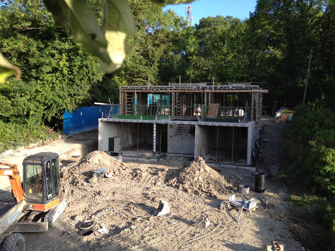 Reinforced concrete going up, still with only a part-width slab