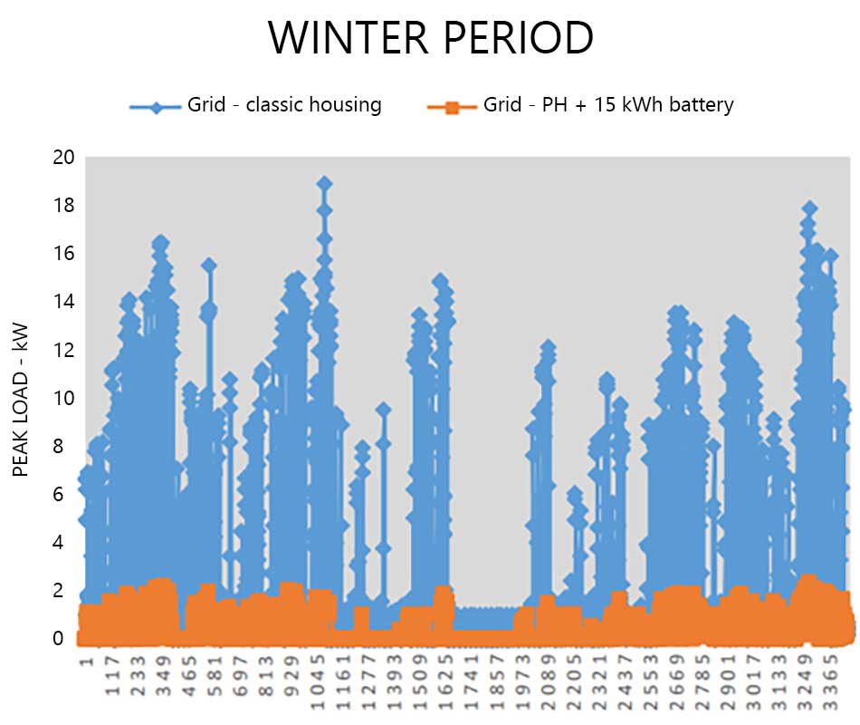 The emerging evidence appears to suggest that there are two distinctive performance characteristics of a passive house plus, where it also has a battery rated at approximately 1 kWh per 1 kWp of PV array (this is considered the cost-optimal ratio for self-consumption).