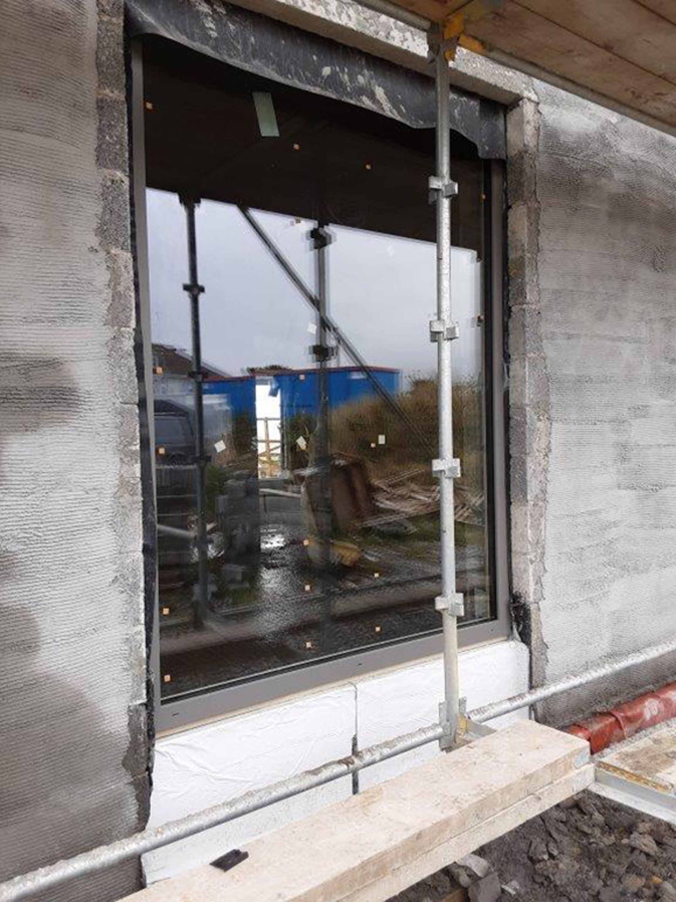 Key measures taken to reduce thermal bridging included the use of Mannok Aircrete 7 blockwork courses at raft level and at parapets, Ancon thermally broken stainless steel support connections to outer leaf blockwork, Partel Alma Vert thermal breaks to all door thresholds and window cill connections, Armatherm pads under any steel columns brought down to raft level.
