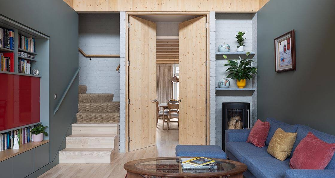Since completion in 2023, construction has already begun on the home of the Lowe family’s new neighbours that will complete this modern terrace. Unlike most terraces, each of the buildings are standalone developments with very little in common in terms of design, size and construction beyond a very roughly similar footprint. But closer investigation reveals Teach Sprúis to be a real outlander because of its innovative two-and-a-half storey layout built using an internally exposed structure made largely of cross-laminated timber (CLT), and all to the passive house standard.