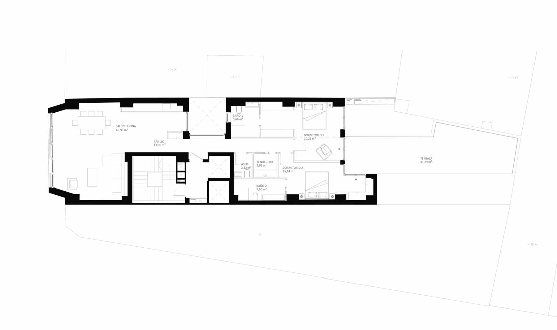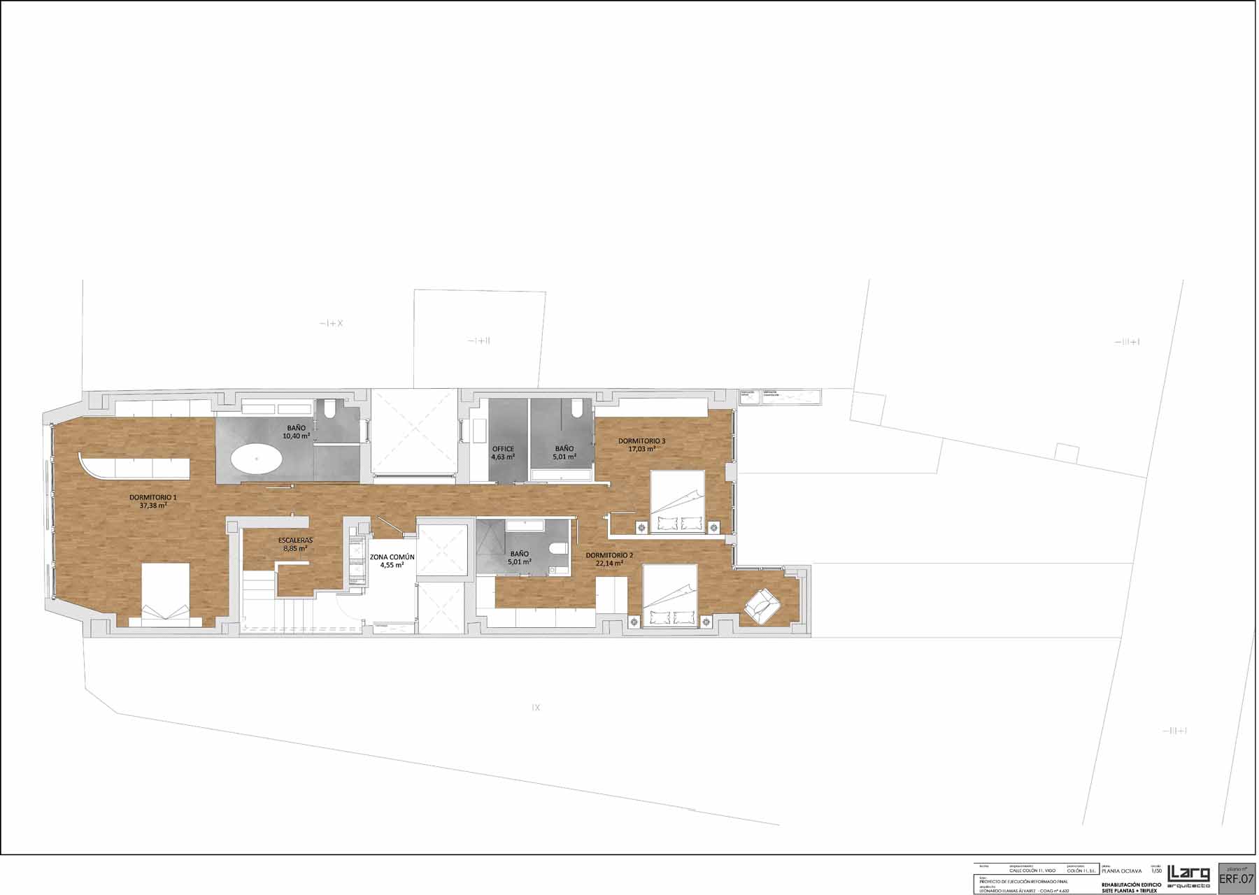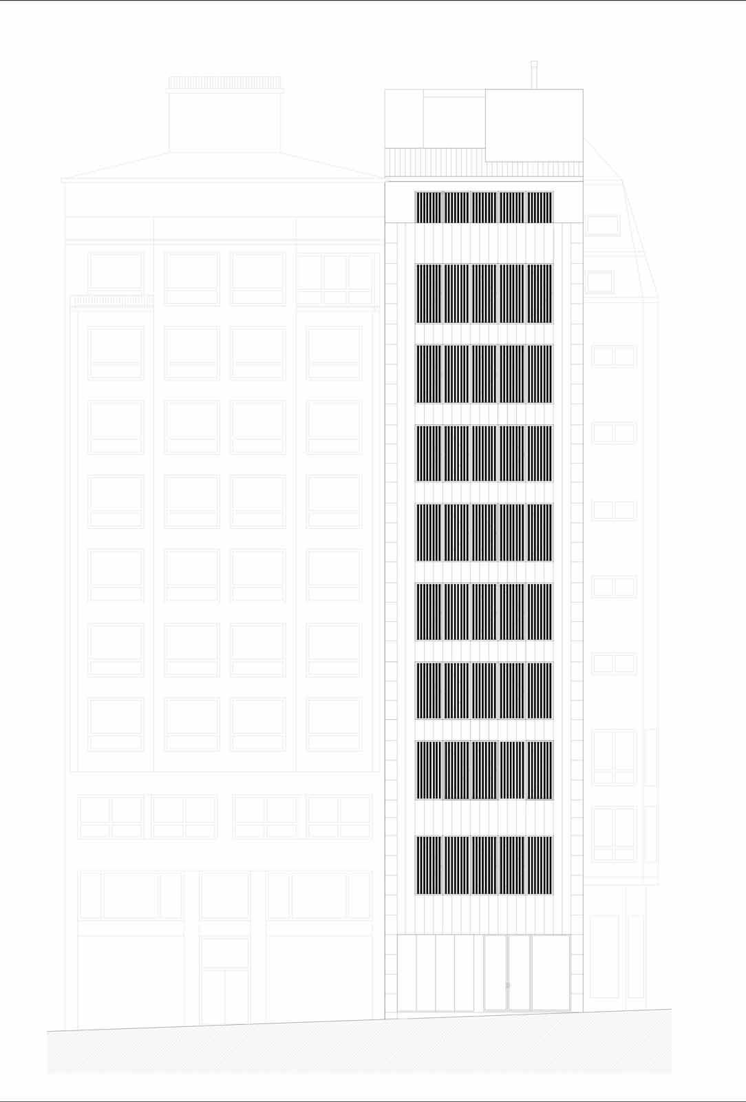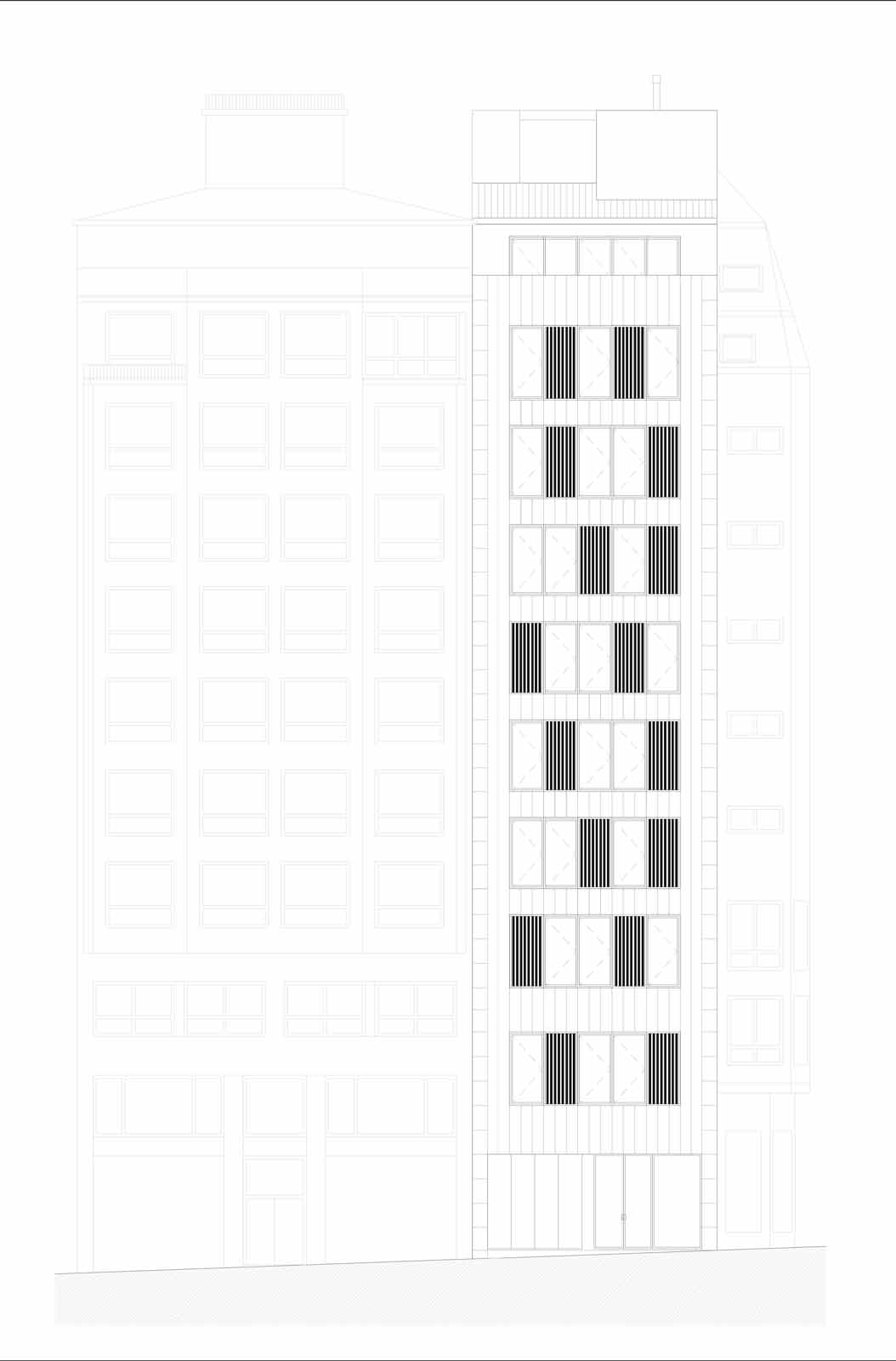 But the team behind the project, led by architect Leonardo Llamas Álvarez of Edifico Arquitectura, faced a daunting challenge: preserving the concrete slabs and columns from the original Hotel Galicia while building an airtight and superinsulated structure on the narrow urban site, between two existing party walls.