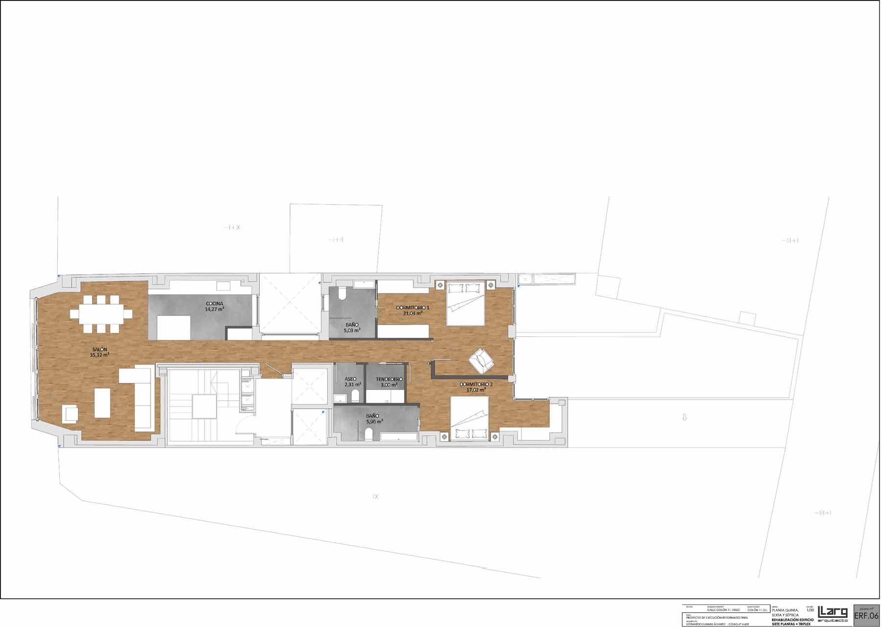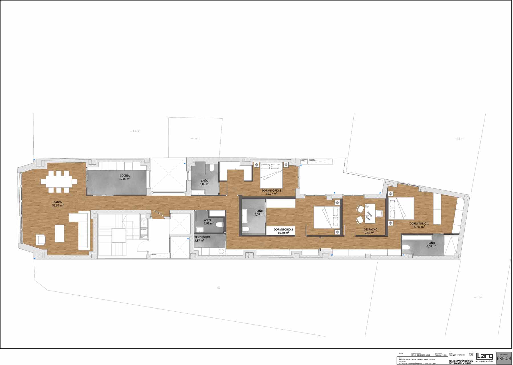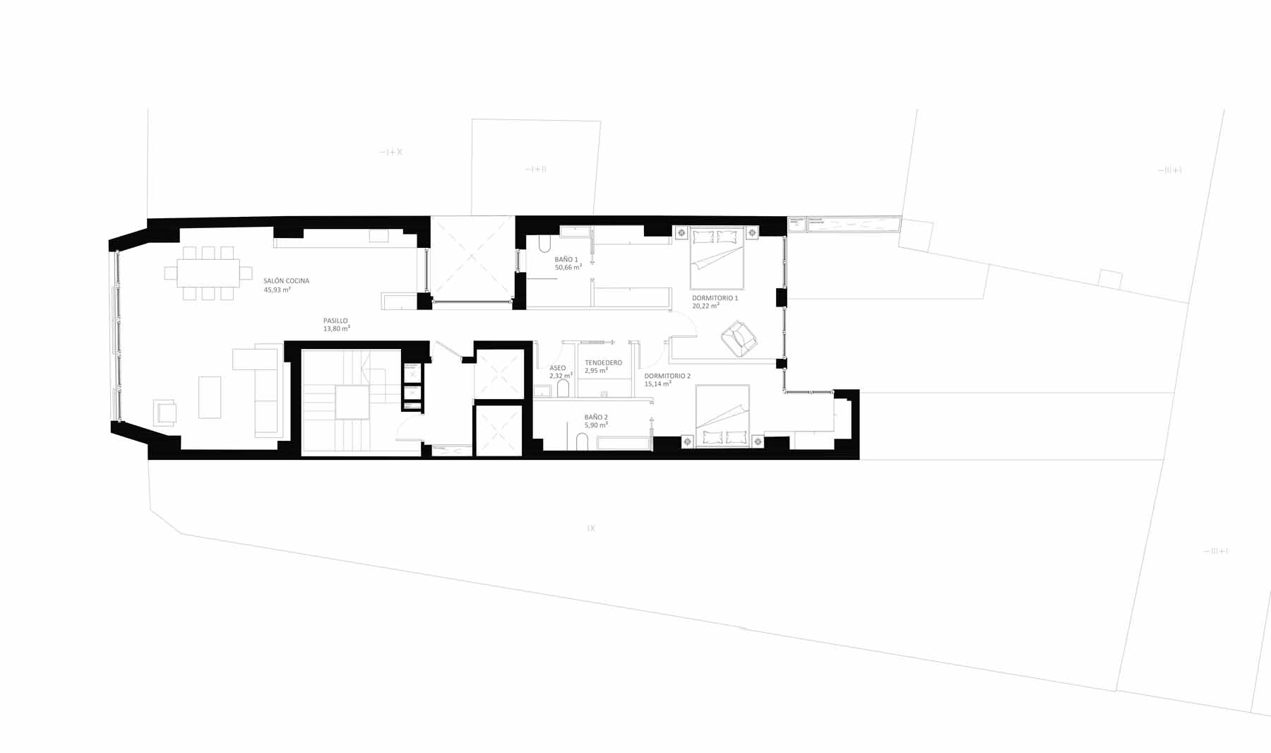 But the team behind the project, led by architect Leonardo Llamas Álvarez of Edifico Arquitectura, faced a daunting challenge: preserving the concrete slabs and columns from the original Hotel Galicia while building an airtight and superinsulated structure on the narrow urban site, between two existing party walls.