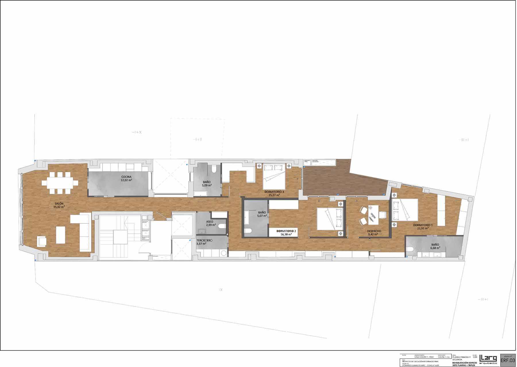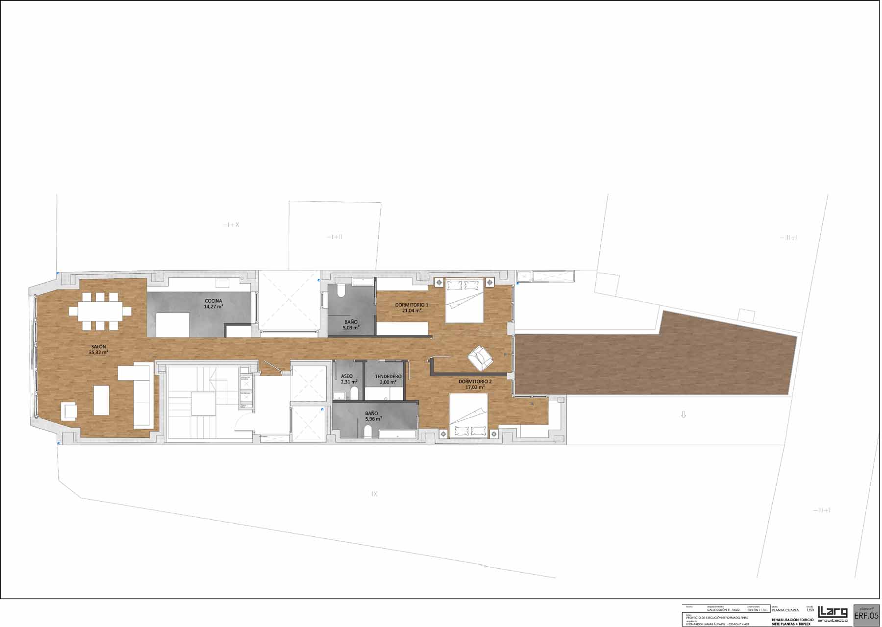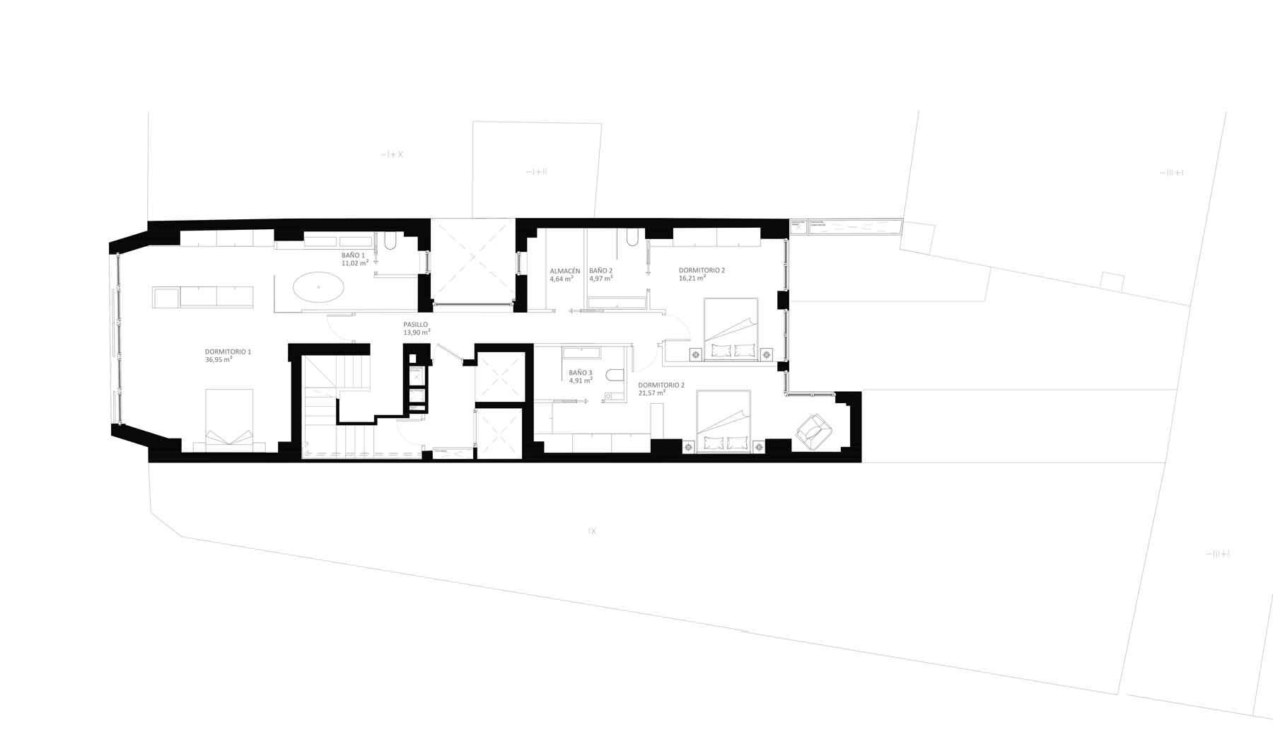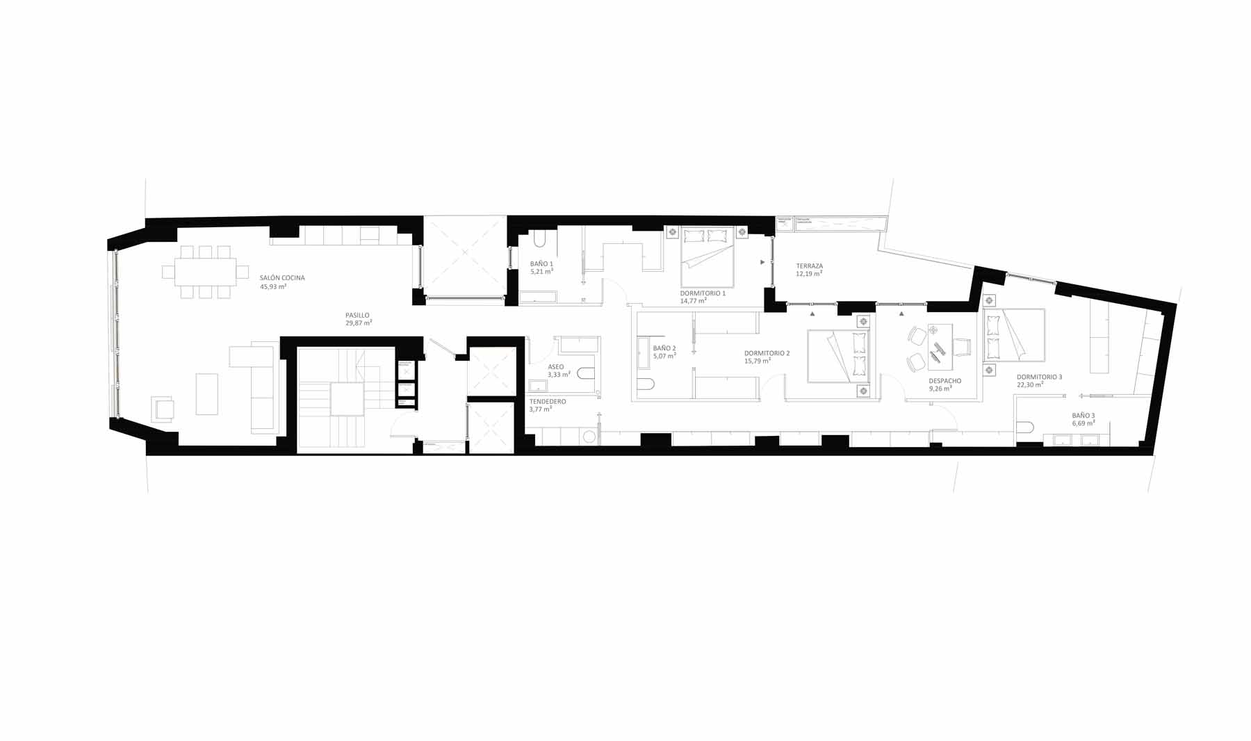 But the team behind the project, led by architect Leonardo Llamas Álvarez of Edifico Arquitectura, faced a daunting challenge: preserving the concrete slabs and columns from the original Hotel Galicia while building an airtight and superinsulated structure on the narrow urban site, between two existing party walls.