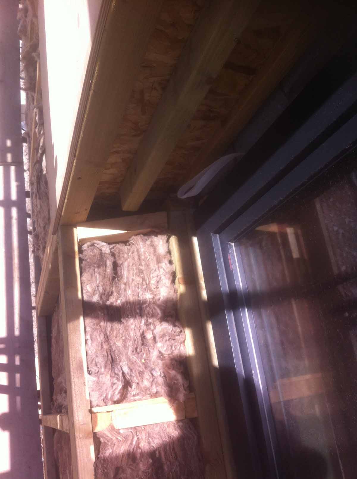 Roof: 18mm T&G plywood followed above by vapour control membrane, 260mm high performance IKO Enertherm insulation, flat roofing IKO / ICO-PAL membrane. U-value: 0.10 W/m2K
