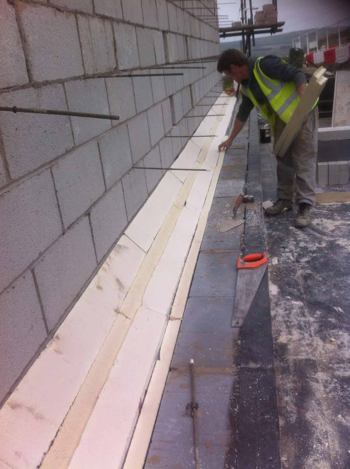 Construction of the retaining wall, which features an inner leaf of concrete block followed outside 100m of Jablite insulation and then fully tanked concrete retaining wall externally