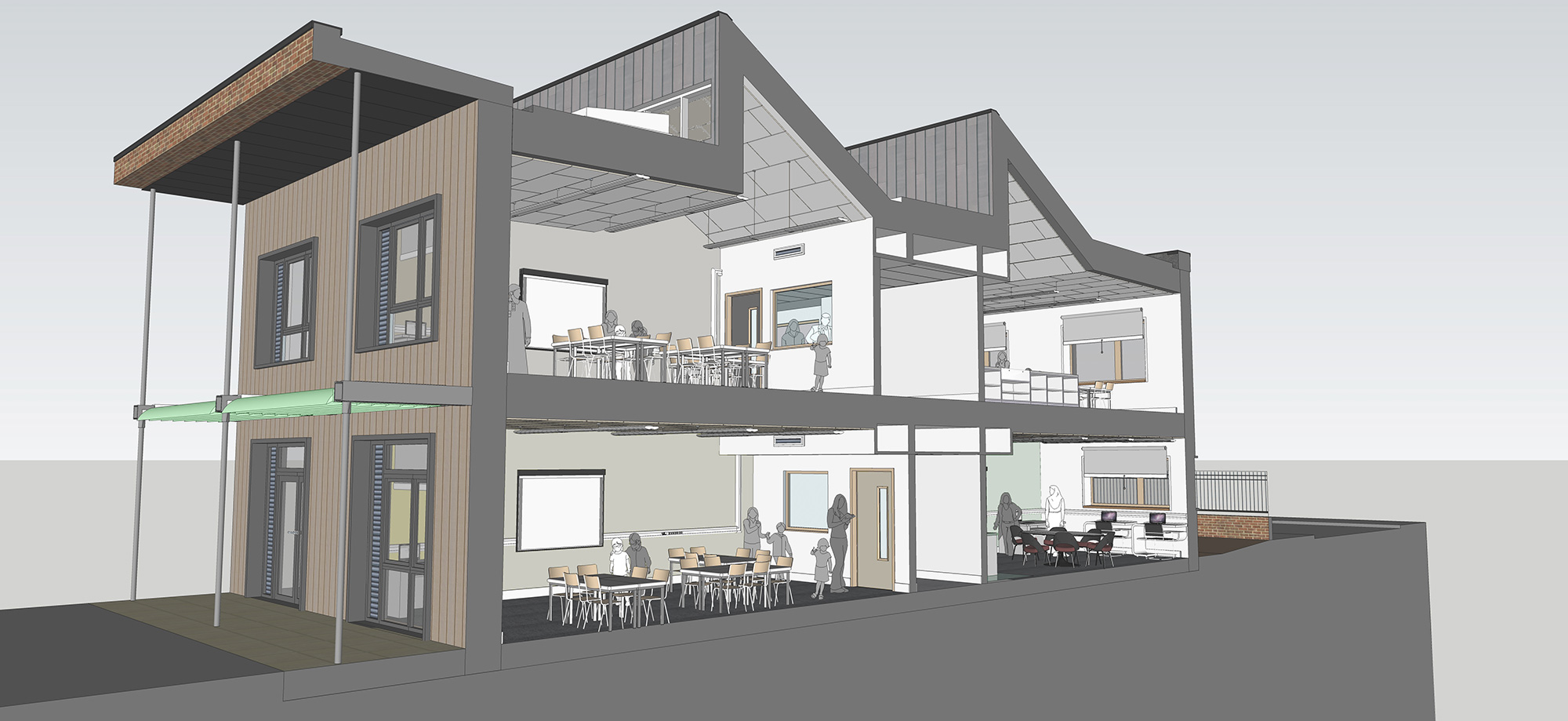 Building type: 1,250 sqm new two-storey classroom extension built to the passive house standard as part of the expansion and refurbishment of an existing primary school. Refurb included internal remodelling and upgrade of parts of the building fabric to Part L standard.