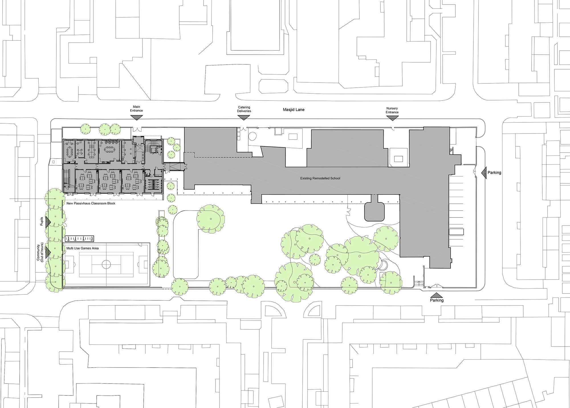 Rivington Street Studio had worked on a number of schools across London, but had never taken on a passive house project before, so leading architectural practice Architype — who have built several schools to the standard — came on board as advisors.