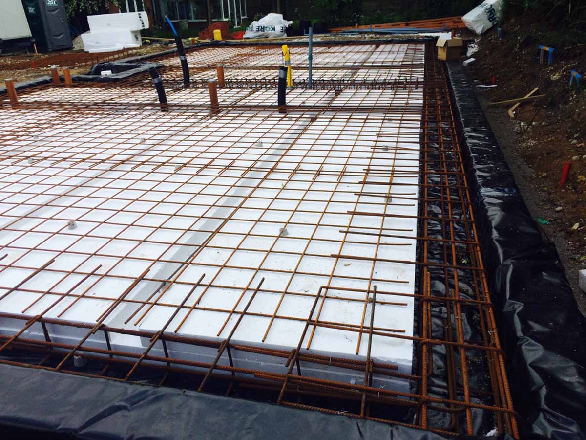 The ground floor features 400mm Kore EPS insulation under 100mm reinforced concrete slab