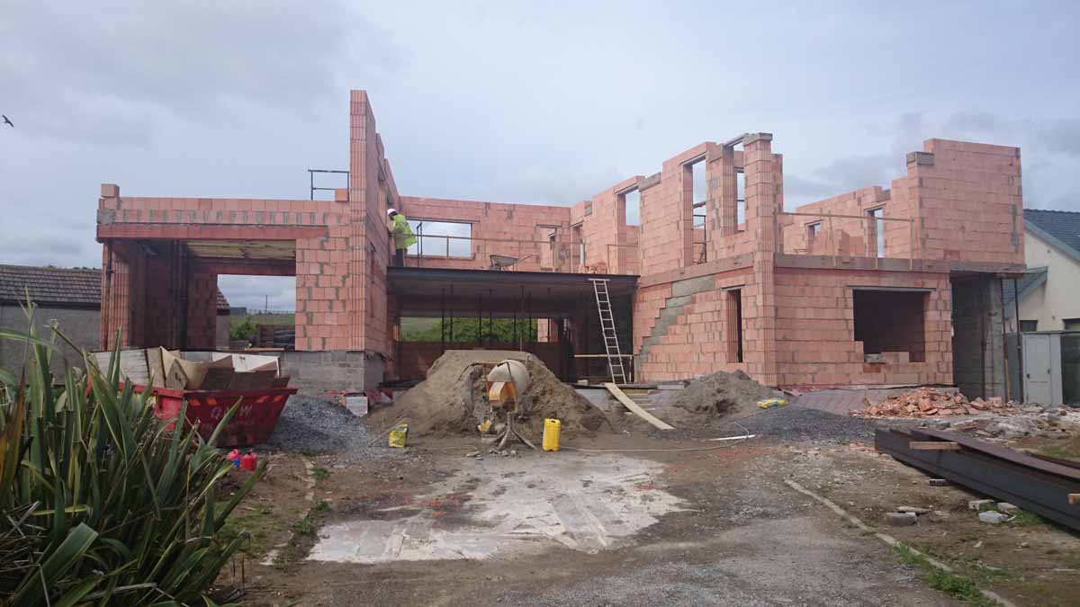 The house itself is built using Juwo poroton clay blocks, and externally insulated with graphite EPS. Crabbe initially looked at using 215mm concrete block on flat with external insulation, but the contractor, Pannoncelt Ltd had extensive experience with poroton.
