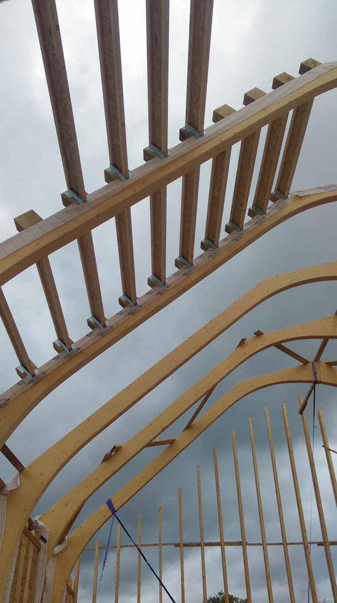 Frame: 140mm wide x varying depth 17mm lamination glulam portals supplied through Pasquill.