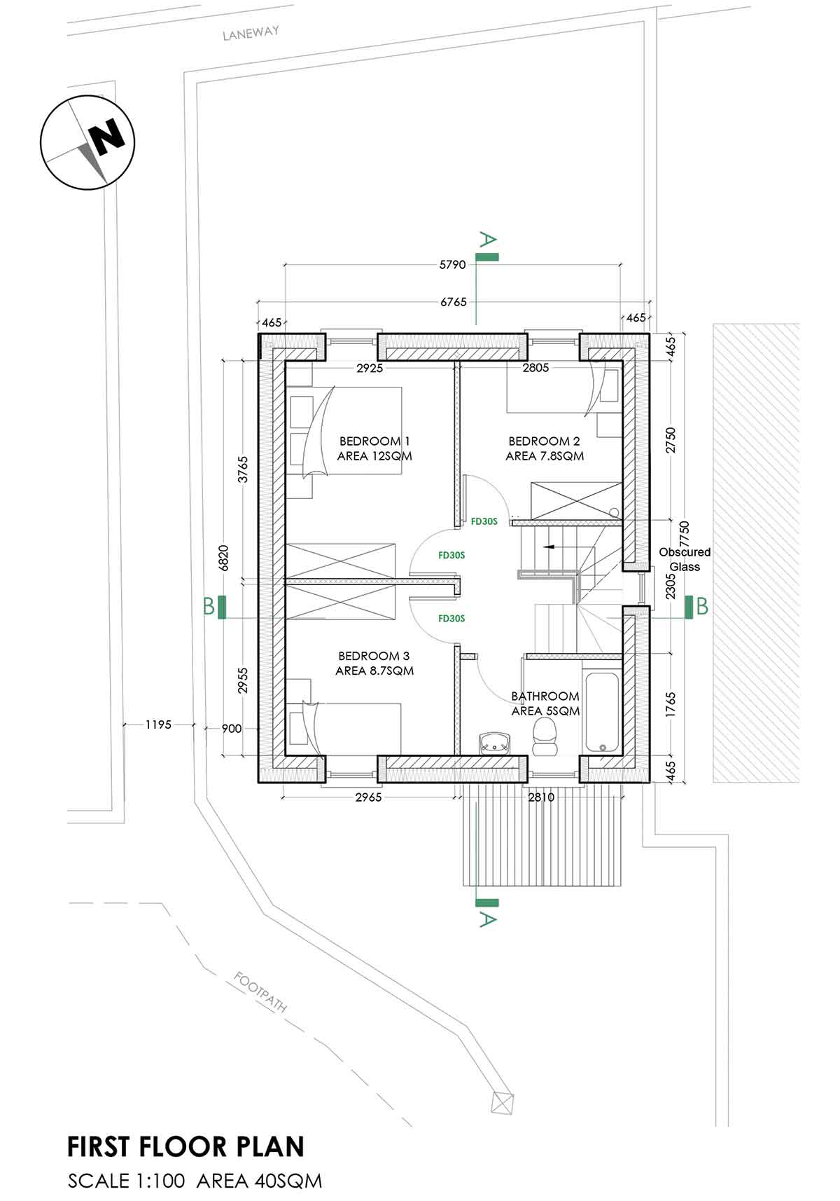 Windows: Passive House Institute-certified Munster Joinery Passiv Aluclad thermally broken triple glazed windows and doors. Overall U-value: 0.71 W/m2K