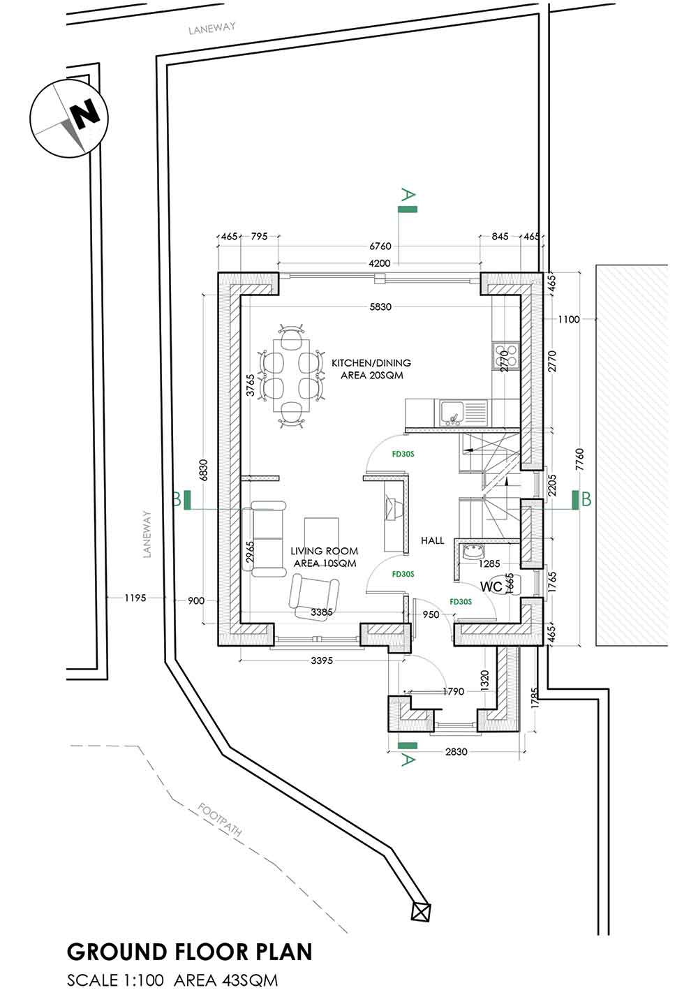 Determined to avoid these problems, the design for Duffy’s new home — which featured two bedrooms, with a potential extra room in the attic and the ability to convert part of the ground floor into a fourth bedroom — considered the future in terms both of energy and occupancy.