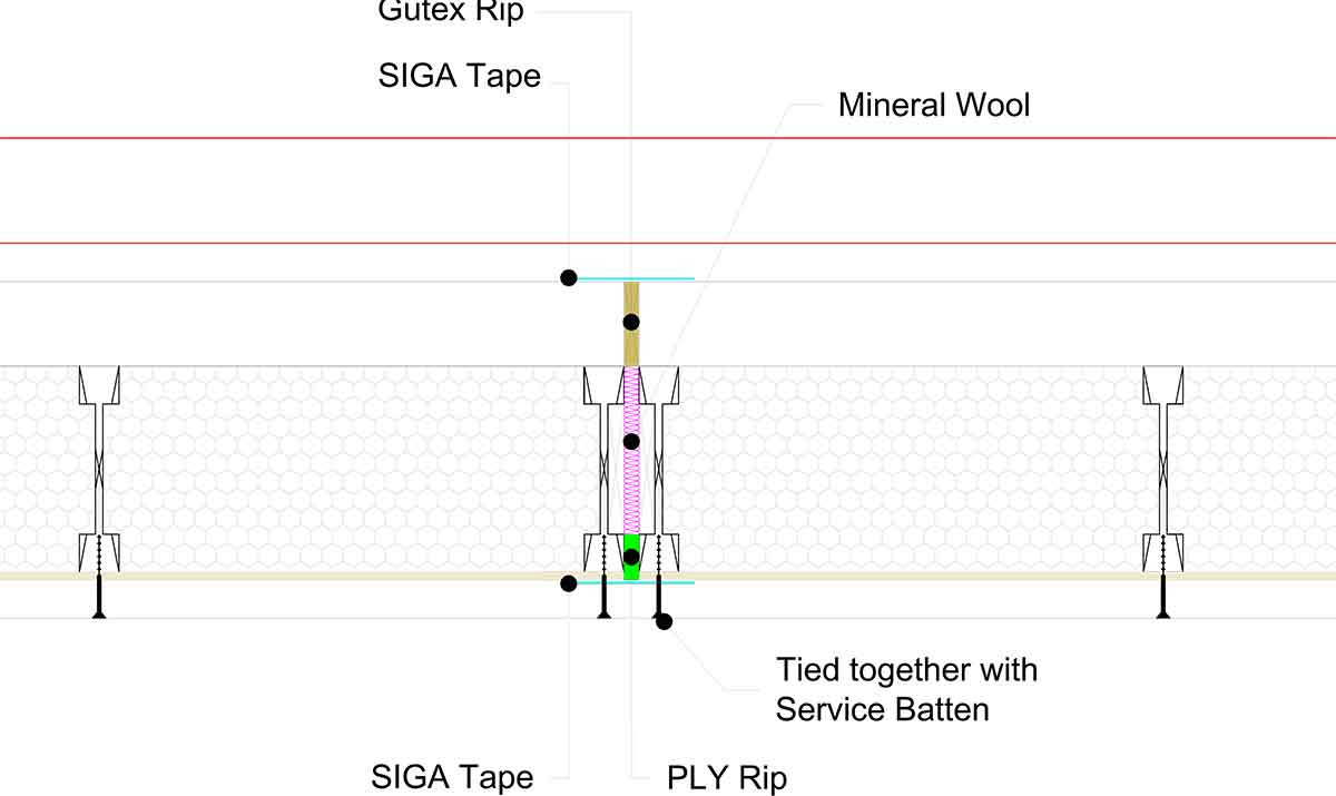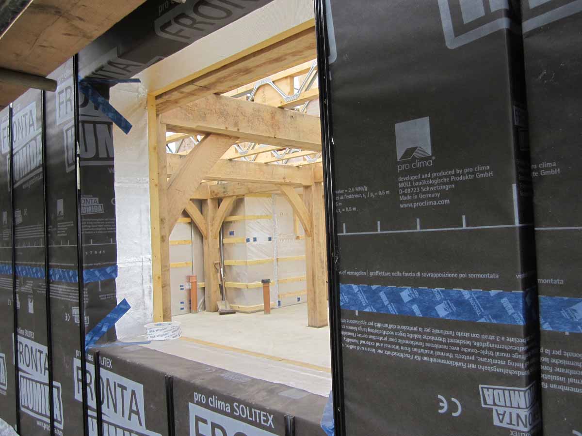 A pre made window ope in insulated panels, with Pro Clima Solitex wind-tight membrane to the outside of the build-up