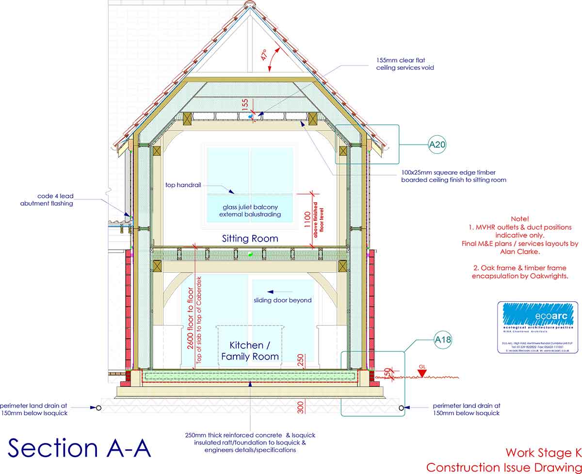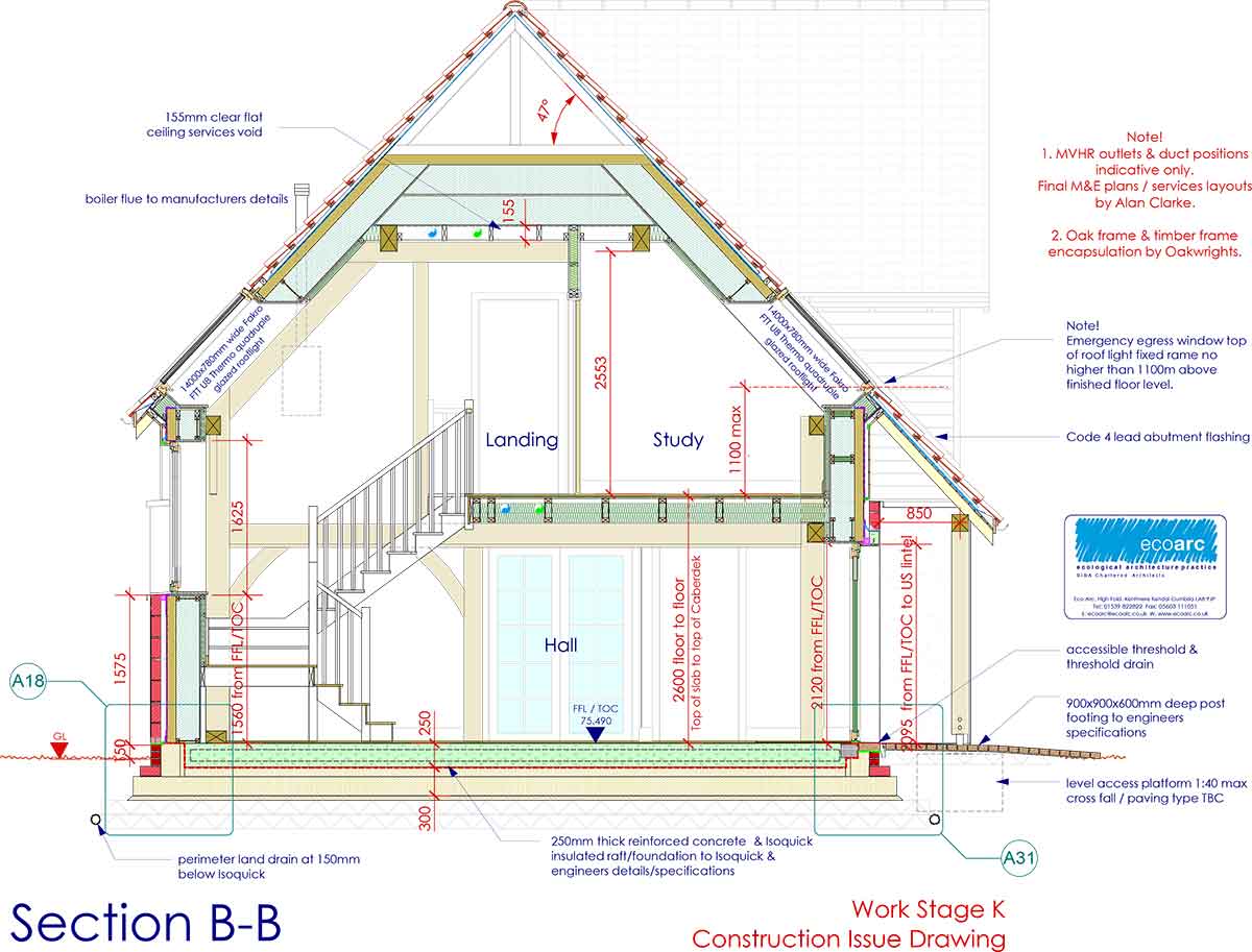 Thermal bridging: Bespoke cold bridge free junction detail design by Eco Arc certified passive house designers with input from Alan Clarke & Nick Grant.