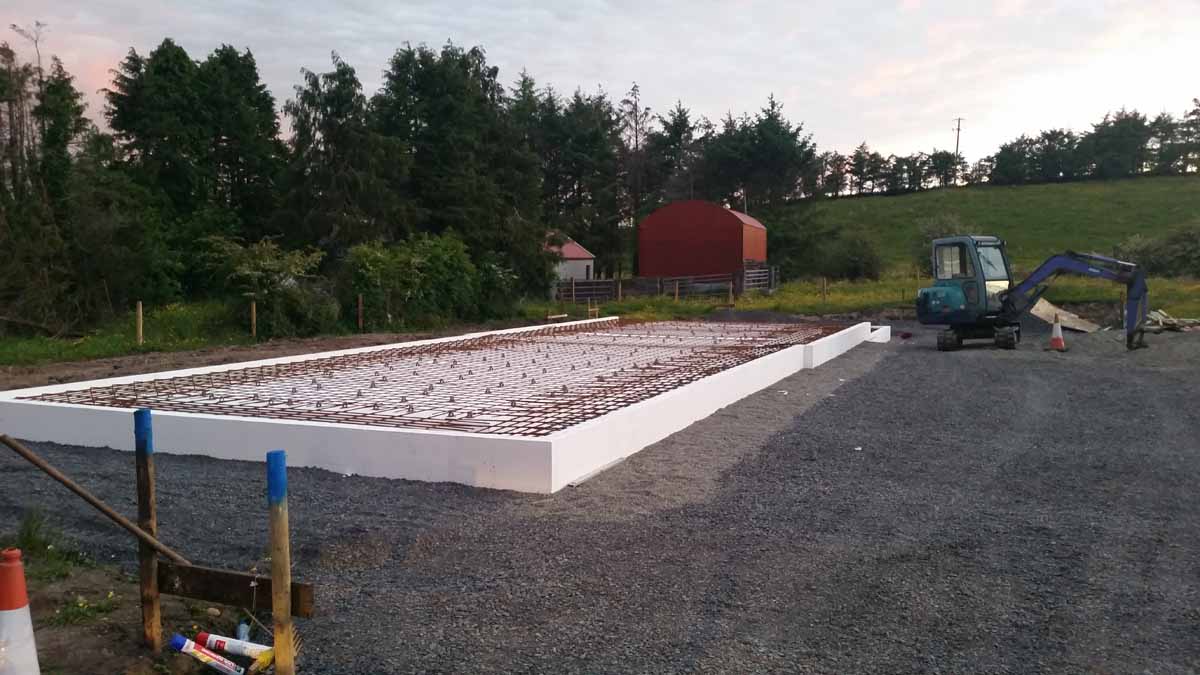 Installation of the Kingspan Aeroground insulated foundation system is followed by a reinforced steel mesh