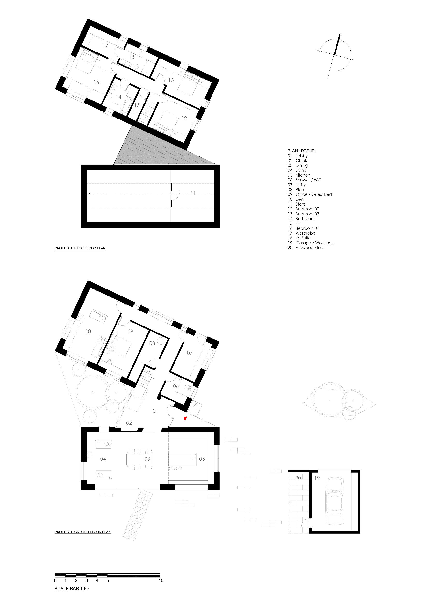Green materials: Locally sourced timber frame, Fermacell dry lining board, natural slate, cellulose insulation, all timber for frame and joinery from PEFC certified sources, 50% GGBS cement, local field stone for entrance walls.