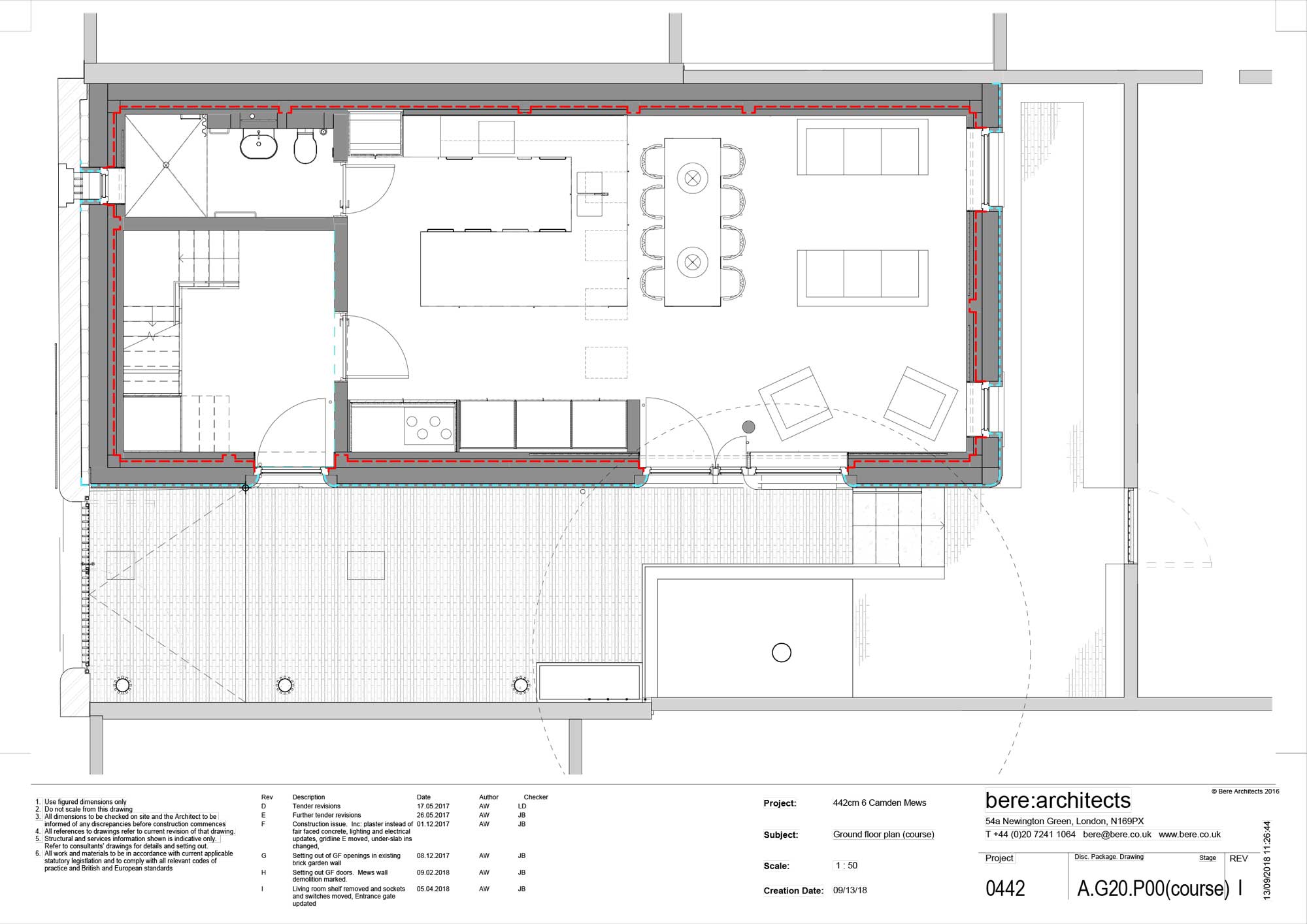 Site constraints—the mews being very narrow—and the desire to retain a historic street wall dating from 1850 caused practical difficulties during the construction phase, and increased costs.