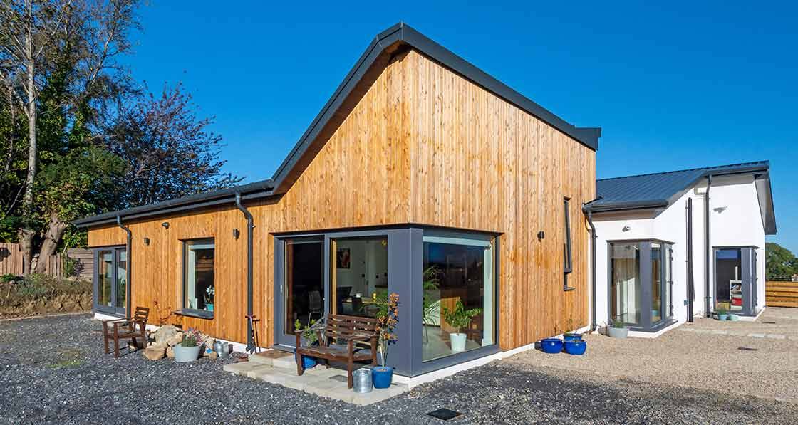 Designed as a four-bed house but with one of the rooms converted into an multi-purpose entertainment centre, this sleek-looking, detached, single-storey dwelling in Carrickmines, Dublin, has achieved an A2 BER along with NZEB compliance, and comes within a hair’s width of meeting the passive house standard. It also shows just how far prefabrication technology has come.