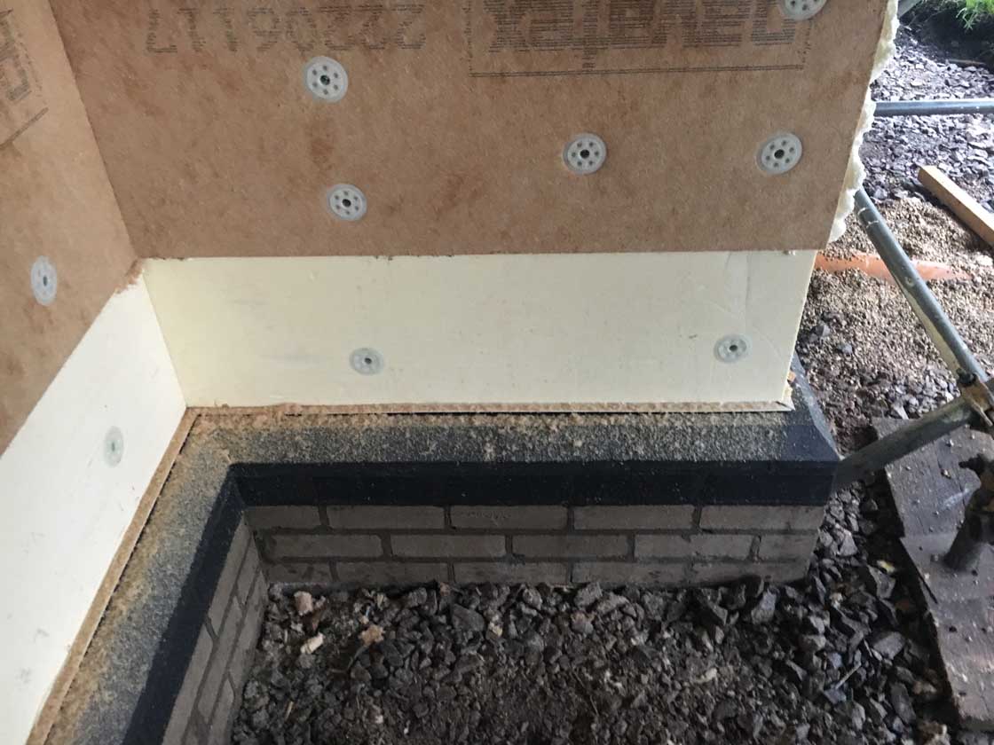60 mm XPS was installed at plinth level to protect wood fibre insulation boards from rain splash due to varying ground levels