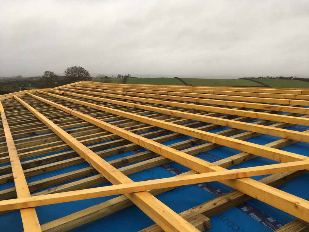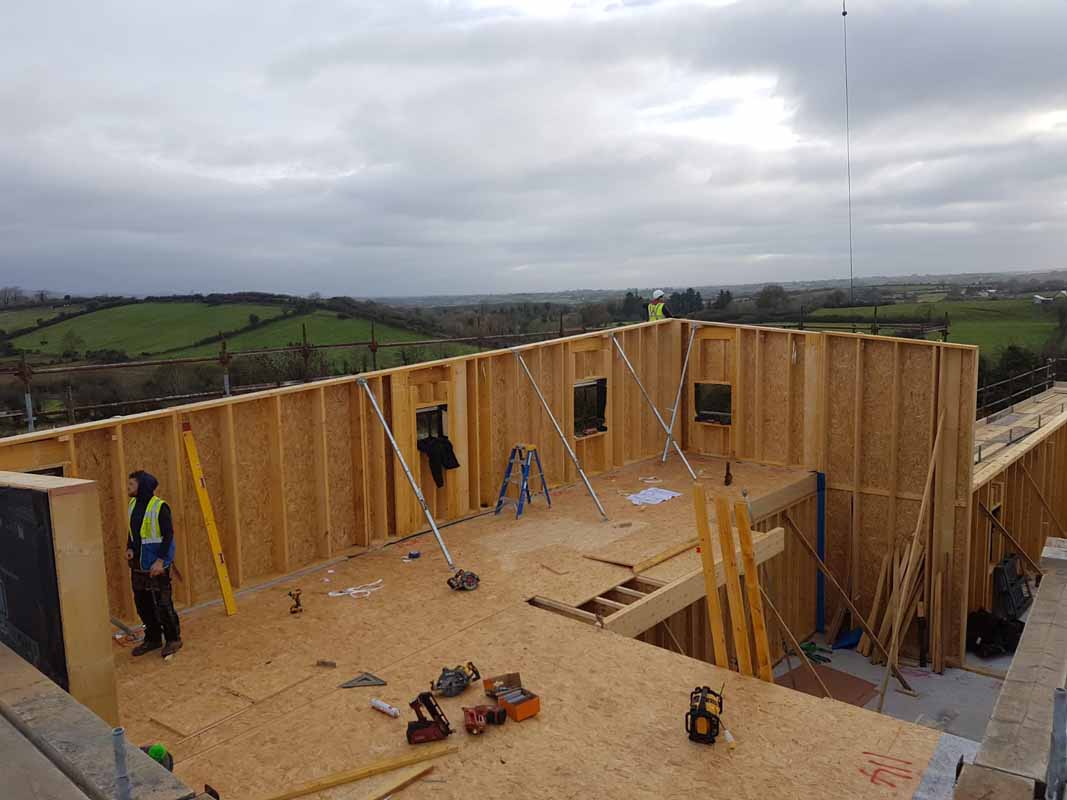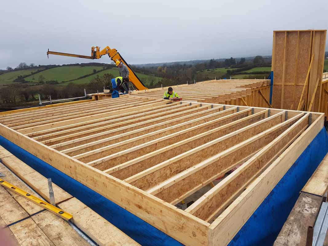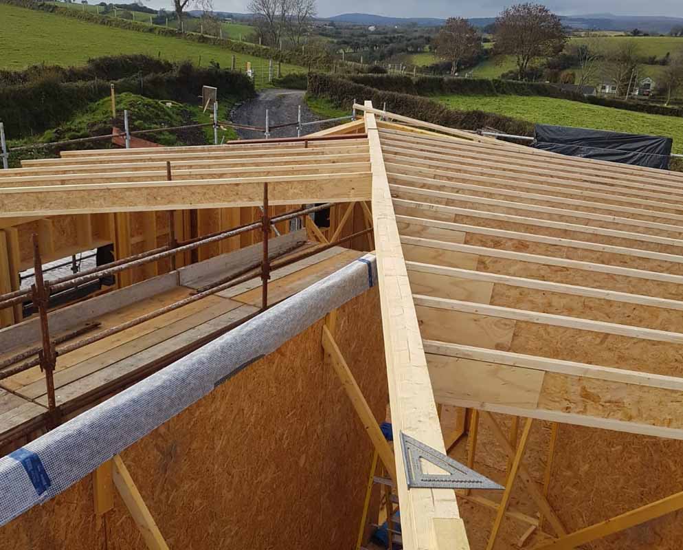 “From a construction point of view the timber frame was a lot easier to build once everything was calculated. The only blockwork that was required was the external leaf and if we had to build two leafs there would have been a tricky proposition to build; especially the sloping wall plates and with each rafter being specifically, individually cut.”
