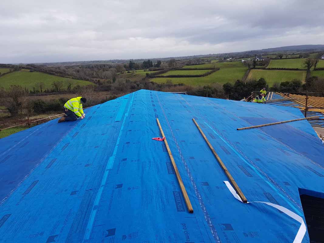 Pro clima Solitex Plus breather membrane being installed on the roof