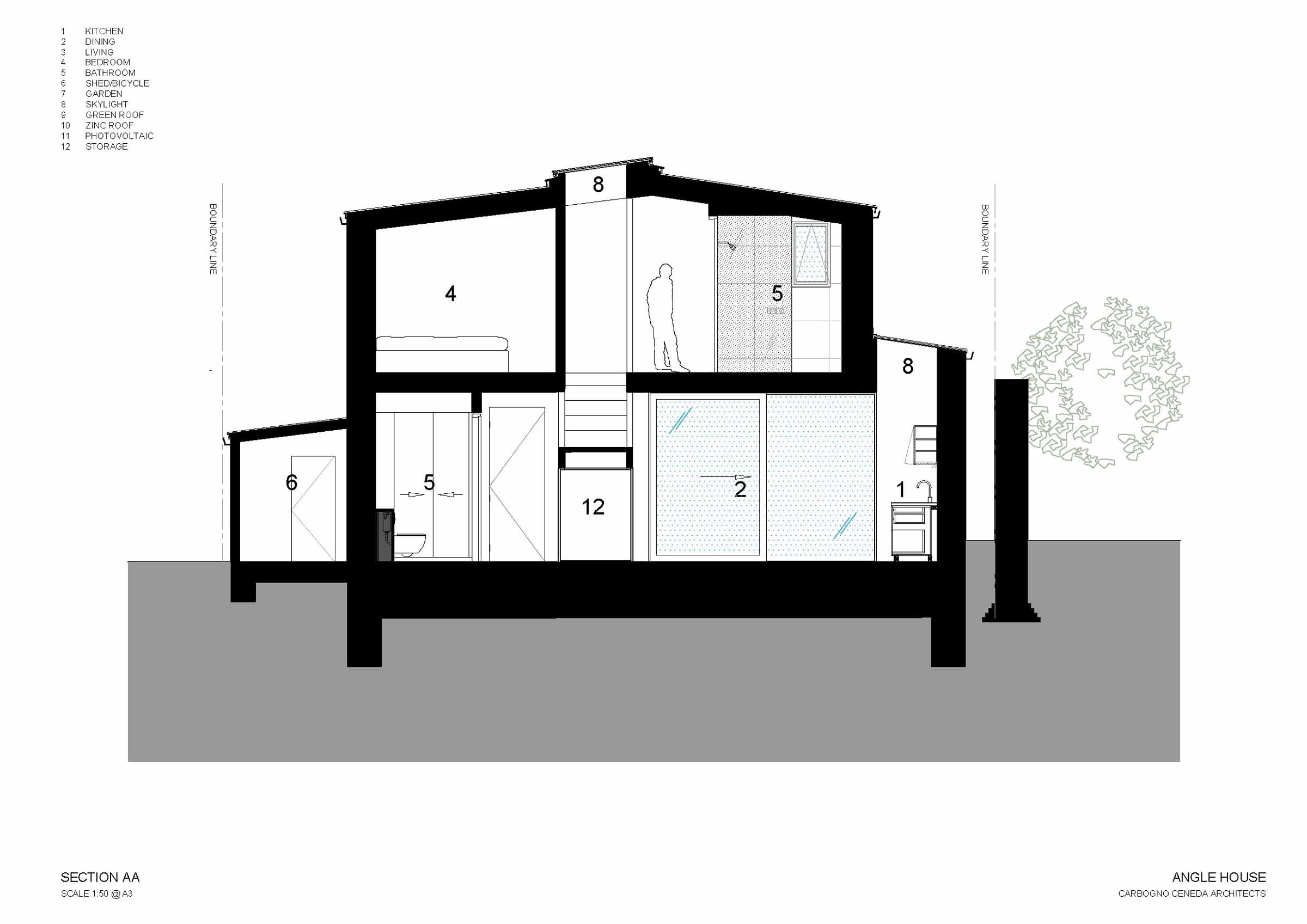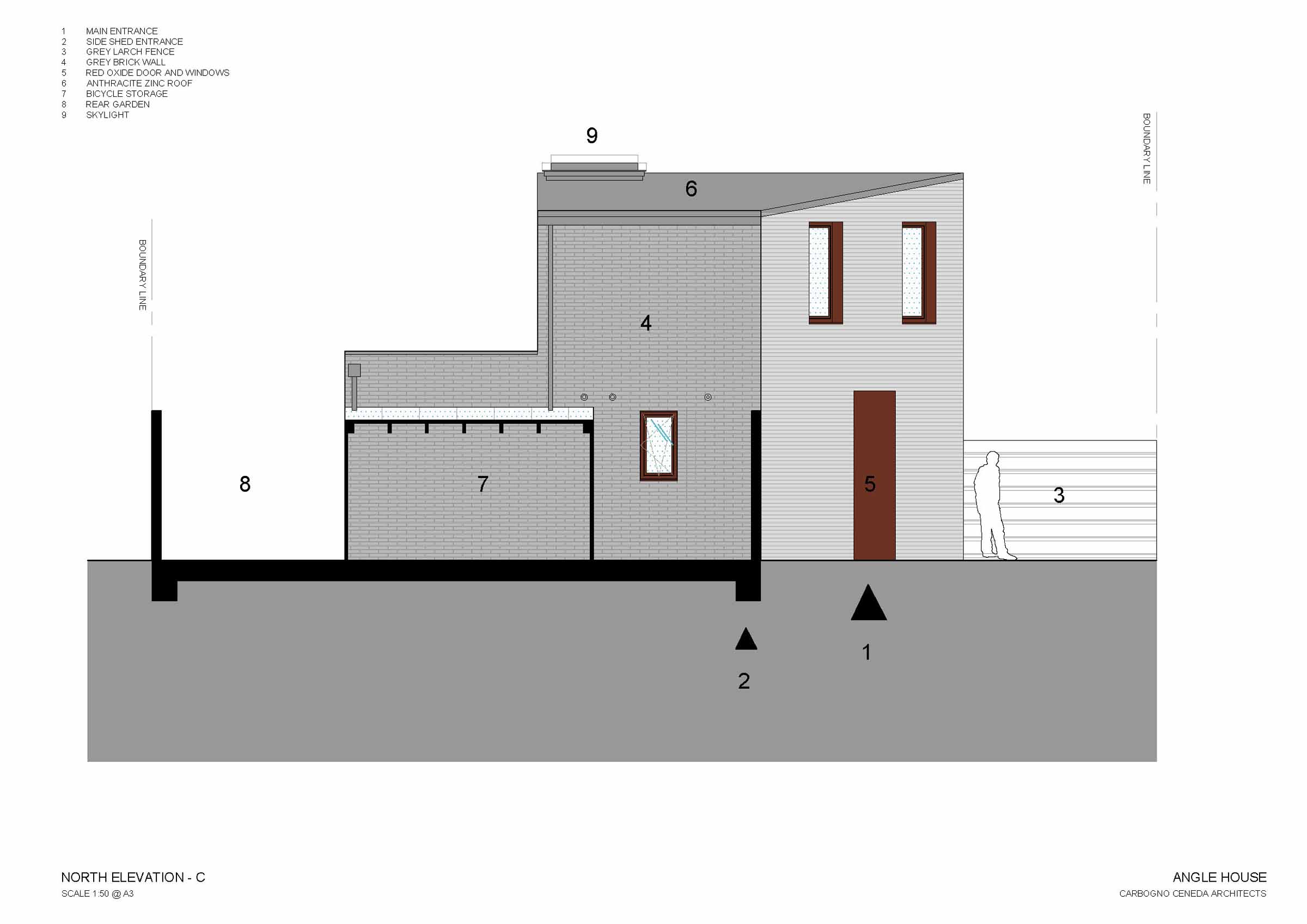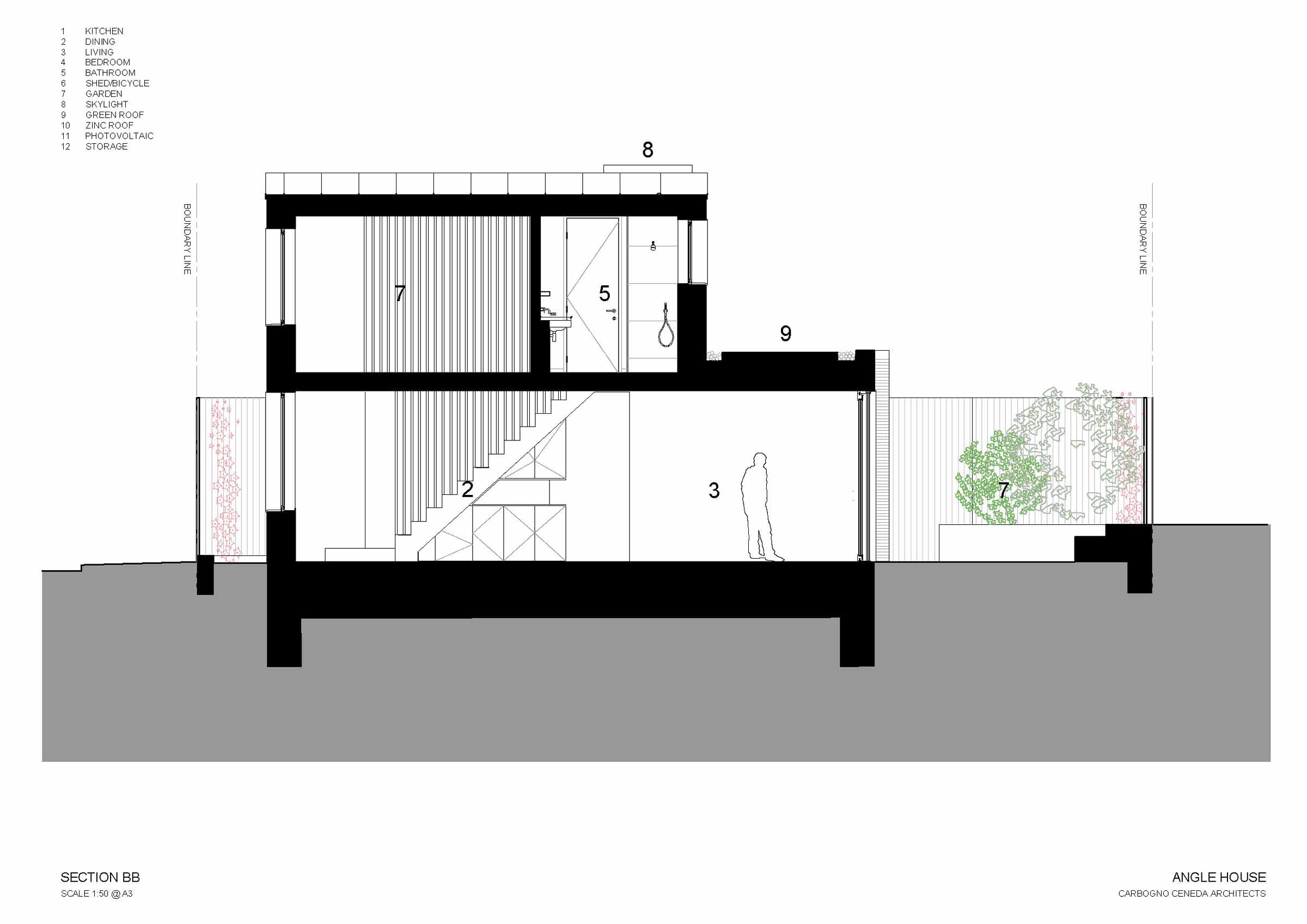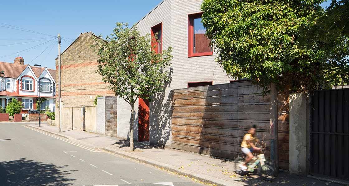 The award-winning Angle House is a low energy dwelling sandwiched between Victorian terraces on a previously neglected site in Tottenham. The two-bedroom home and office was co-designed by Italian architect Andrea Carbogno and his partner, French architect Sophia Ceneda.