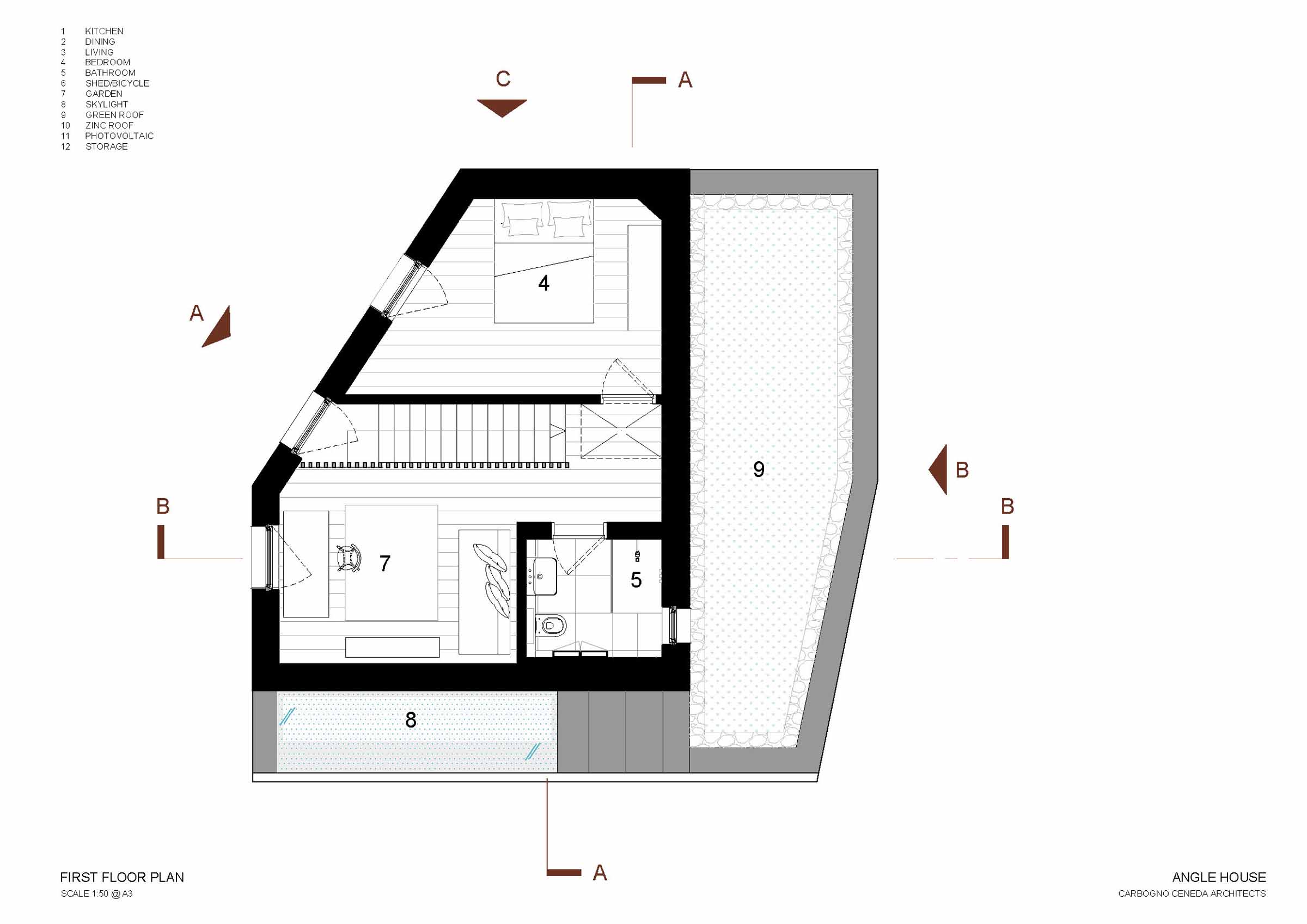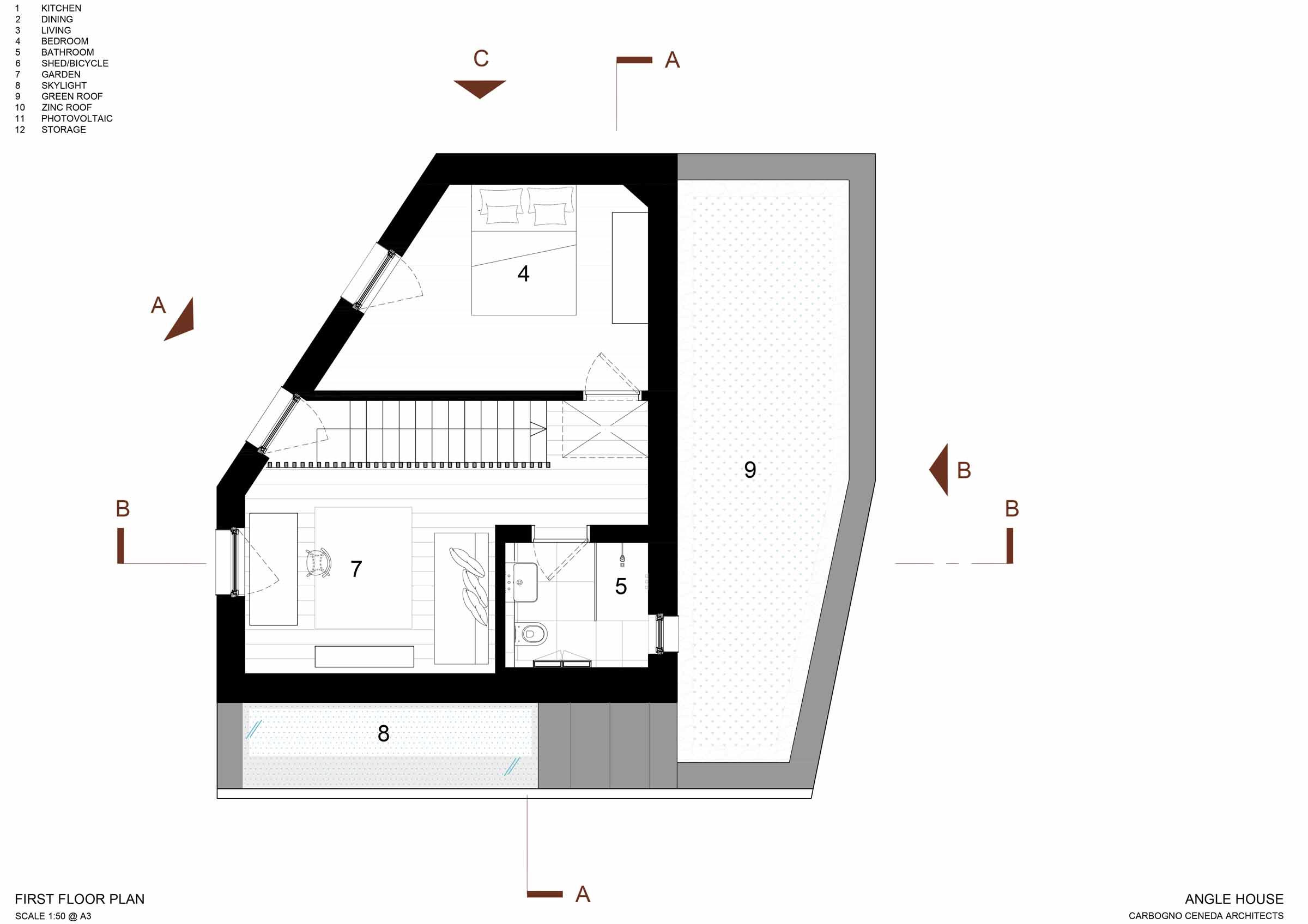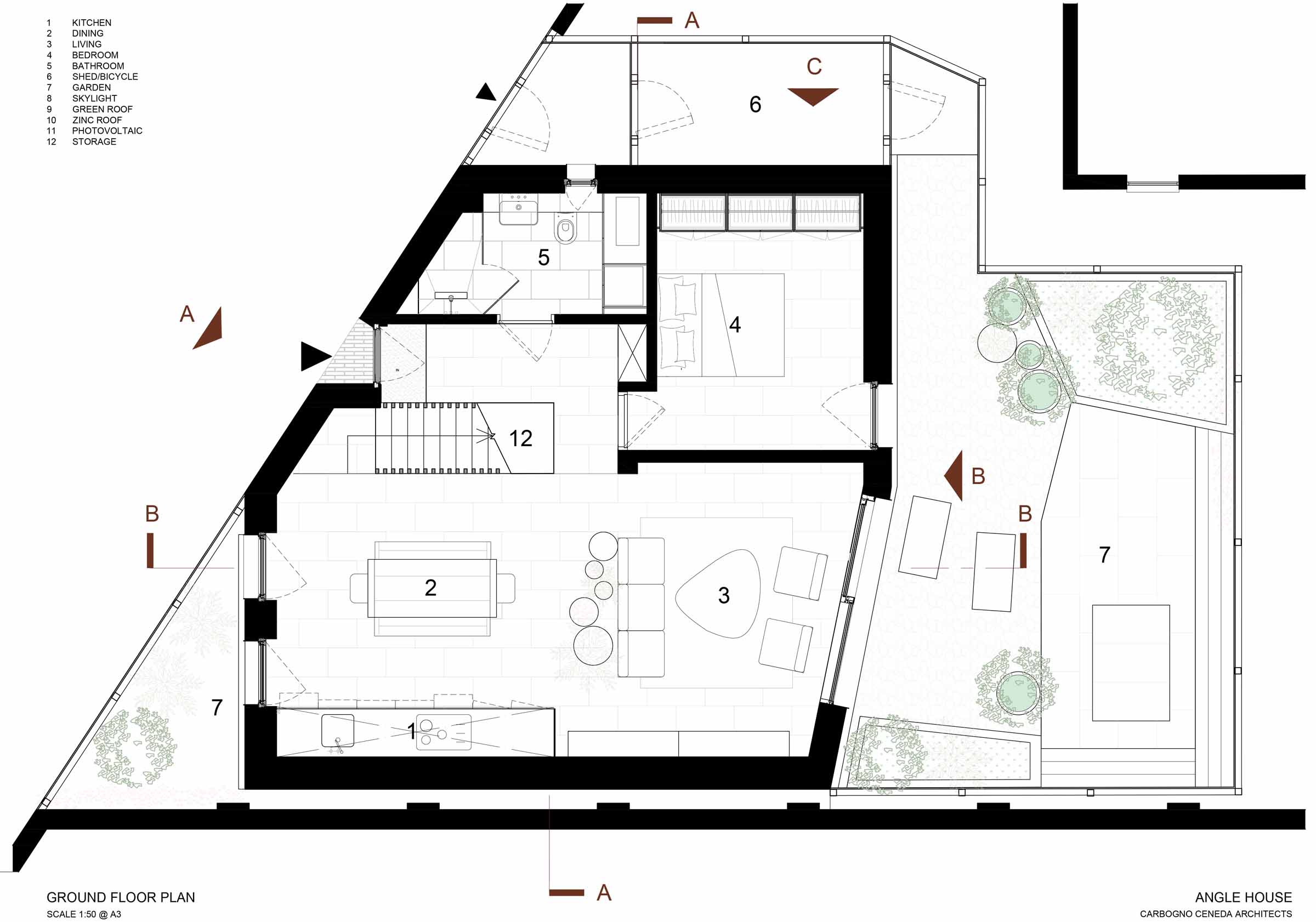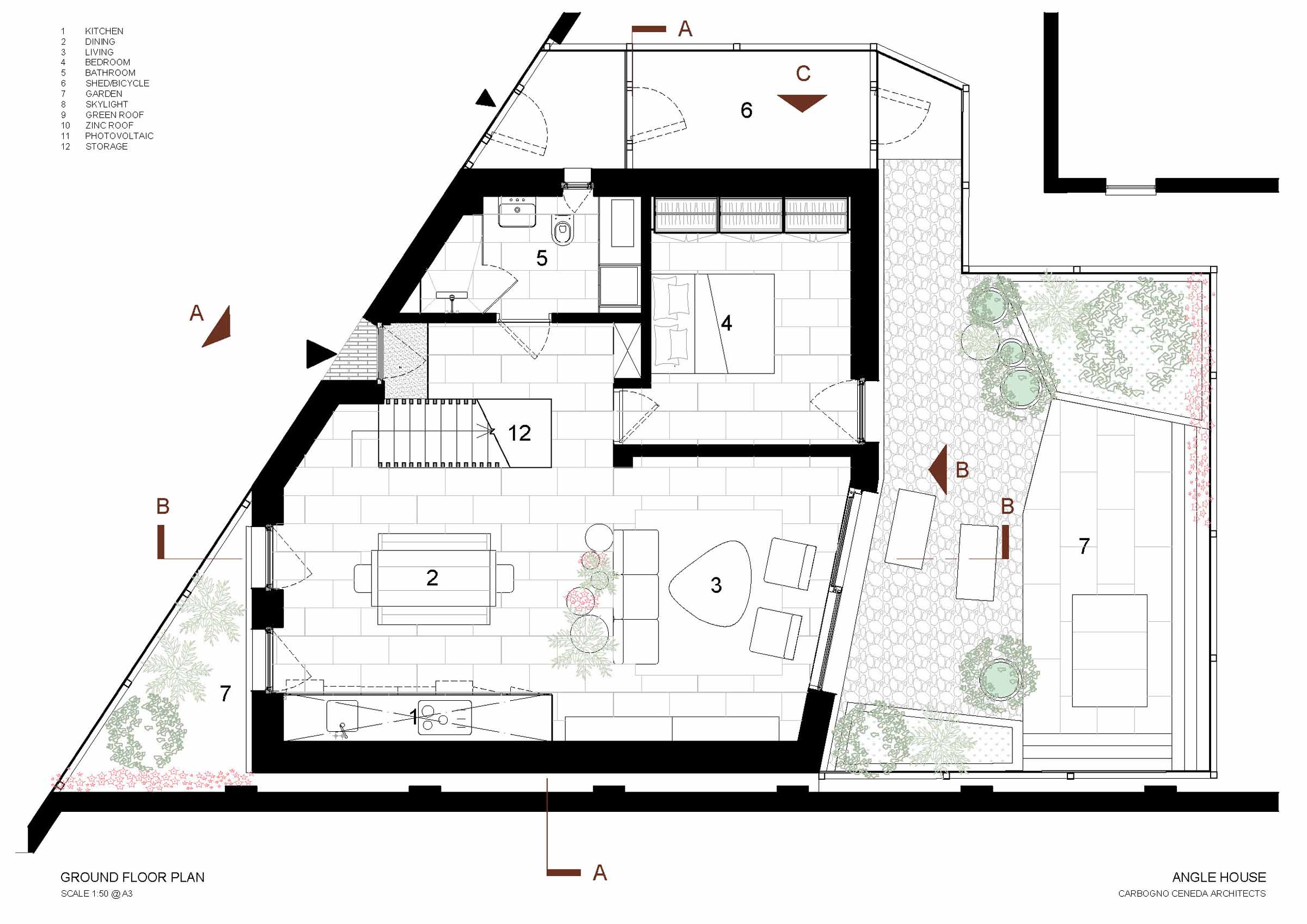 The award-winning Angle House is a low energy dwelling sandwiched between Victorian terraces on a previously neglected site in Tottenham. The two-bedroom home and office was co-designed by Italian architect Andrea Carbogno and his partner, French architect Sophia Ceneda.