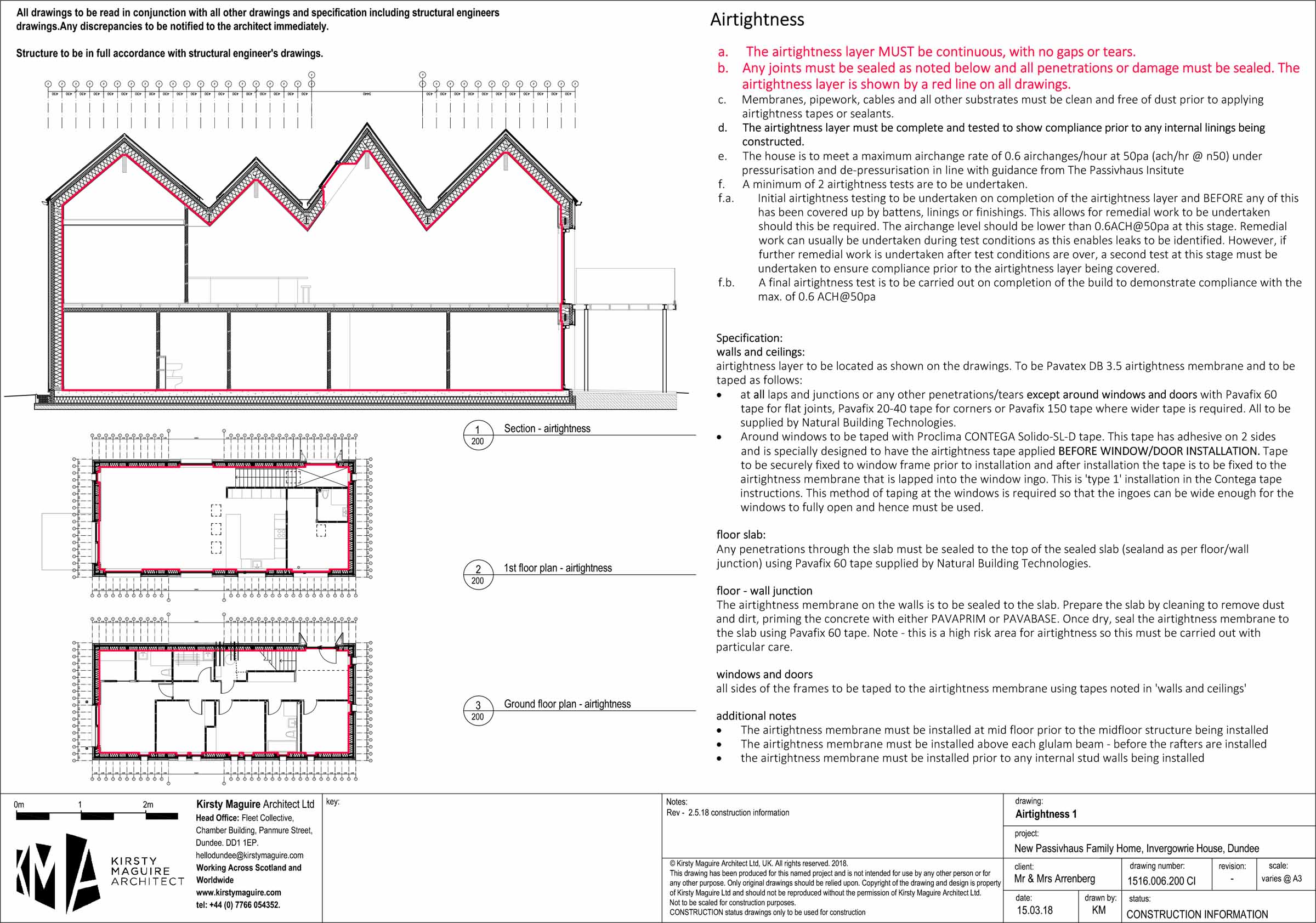 Airtightness (at 50 Pascals): 0.66 m3/hr/m2