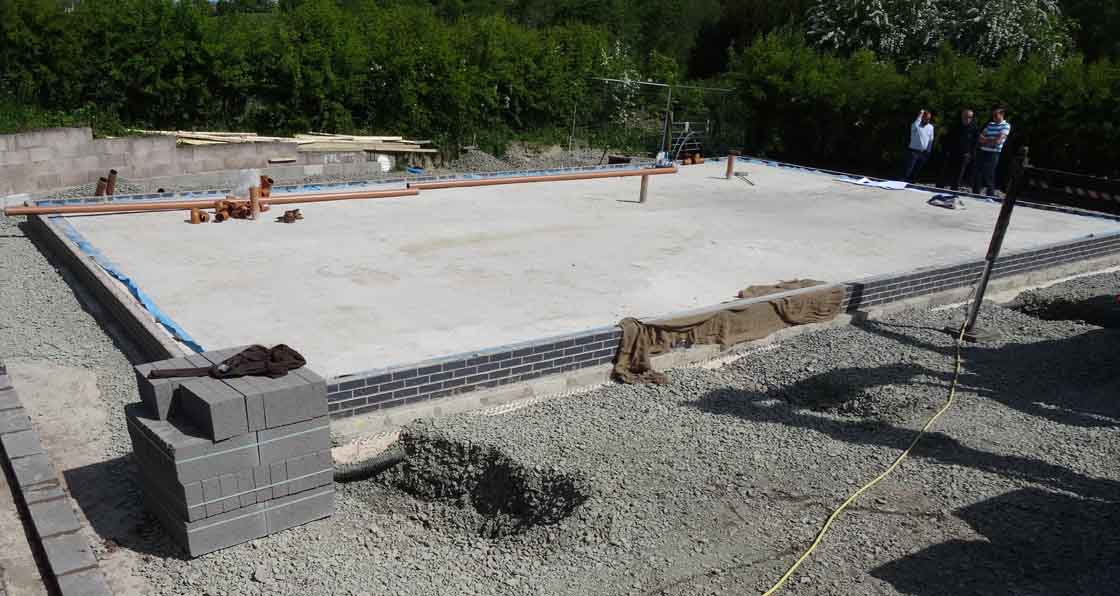 Ground floor: Isoquick insulated foundation system incorporating 250 mm BASF Peripor EPS insulation completely encasing 300 mm reinforced concrete slab (with 50 per cent GGBS). U-value: 0.127 W/m2K
