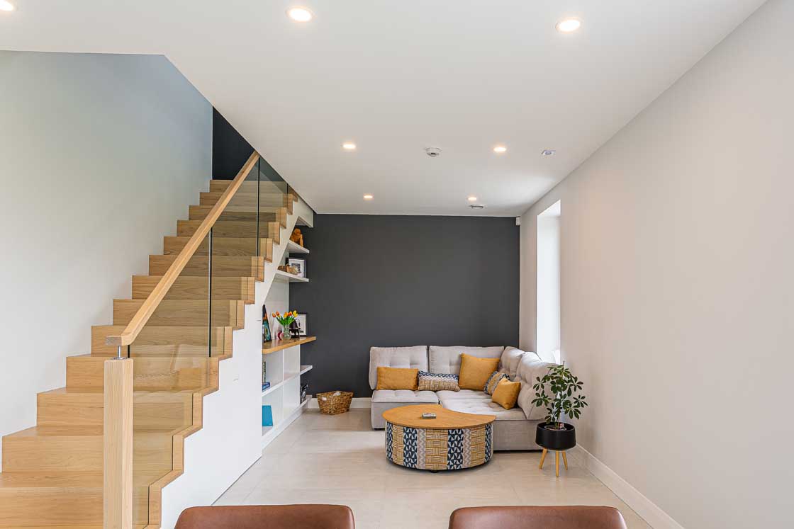 When they eventually moved in, the difference in temperatures between his parent’s 1970s built bungalow and his new home took a bit of getting used to. “The average temperature [in his parents’ house] was around 18 or 19C and then all of a sudden we went into this house where even now, the temperature is always comfortable even with heating off for two or three months. But you do get used to it.” They haven’t ever turned on the underfloor heating upstairs, they just turn on the ground floor heating at night, every second or third night, during the coldest months of the year.