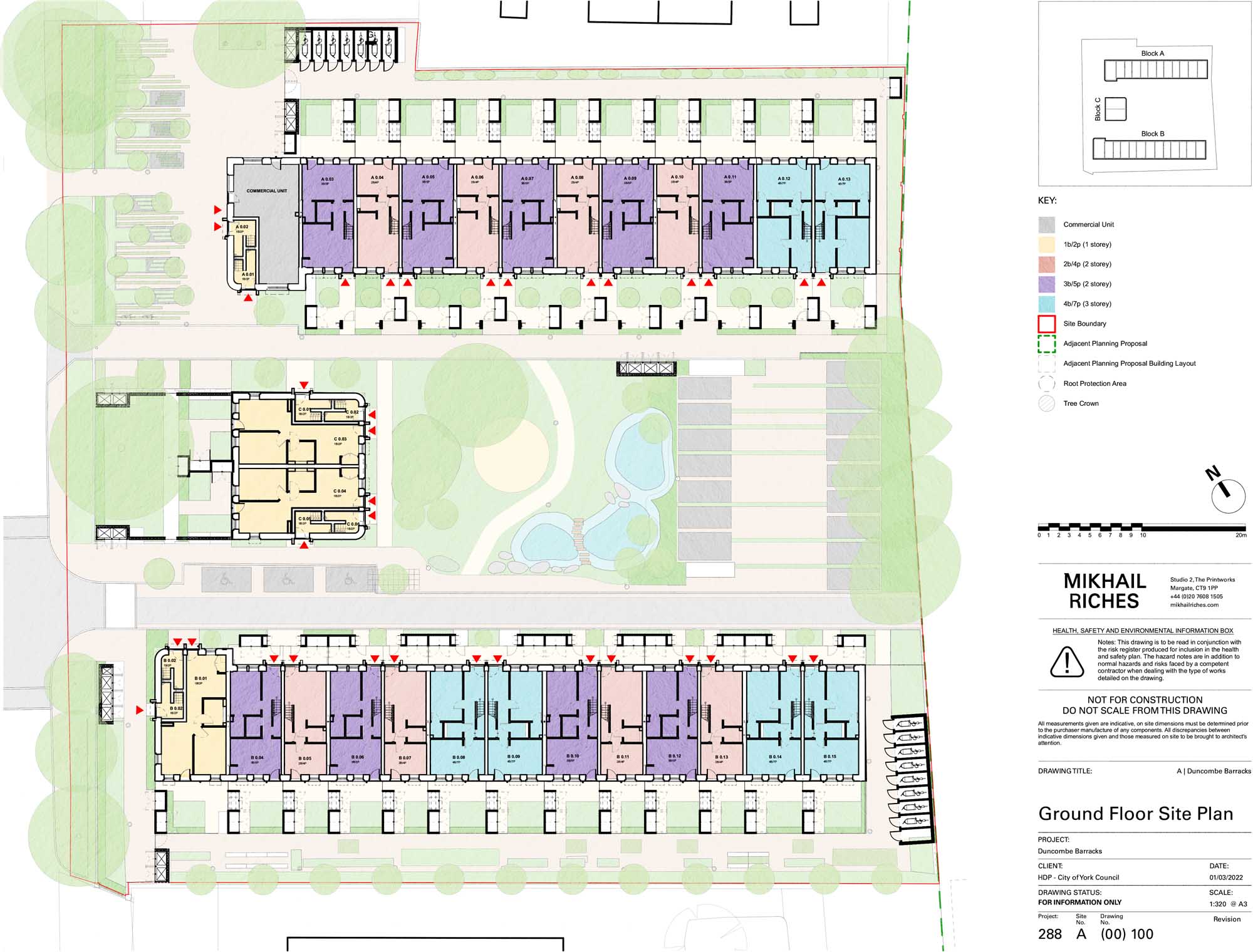 The first two zero carbon sites designed by Mikhail Riches are at Duncombe Barracks, on Burton Stone Lane in the Clifton ward, and Burnholme, in the Heworth ward. Both developments have planning permission and Jones has signed a contract with Caddick Construction to build them. Construction of Duncombe Barracks’ thirty-four homes, and one commercial unit, will begin this summer and is expected to take 18 months.