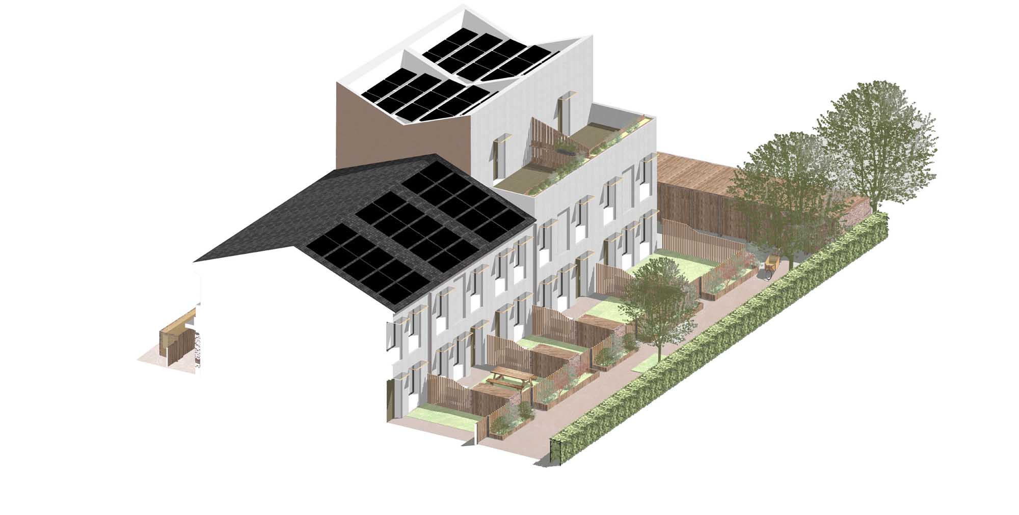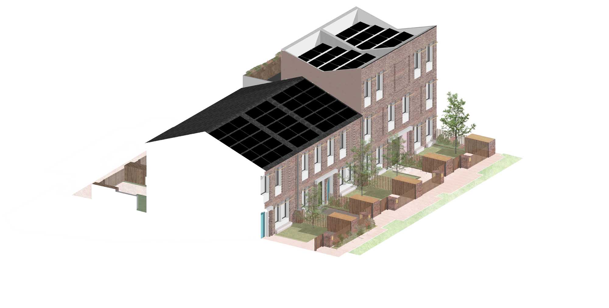 Fifty architectural practices submitted bids and Mikhail Riches was appointed a week before winning the 2019 Stirling Prize for the ground-breaking Goldsmith Street, a certified passive social housing scheme in Norwich which featured in issue 32 of Passive House Plus. “I wasn’t familiar with the practice before their submission, but we visited Goldsmith Street and thought it was fantastic,” said Jones. “When they won the Stirling Prize, it gave us a lot of confidence we were right to take the next step on from Lowfield and build passive houses, incorporating PVs, air source heat pumps and renewables that take it to zero carbon.”