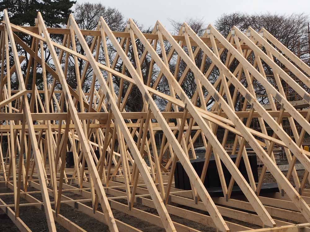 The prefabricated attic roof trusses on site