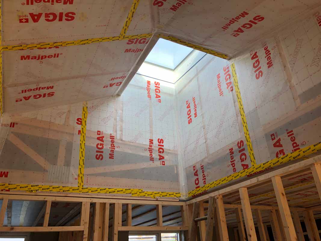 Siga membrane to roof structure and Skylux iWindow3 triple glazed roof windows