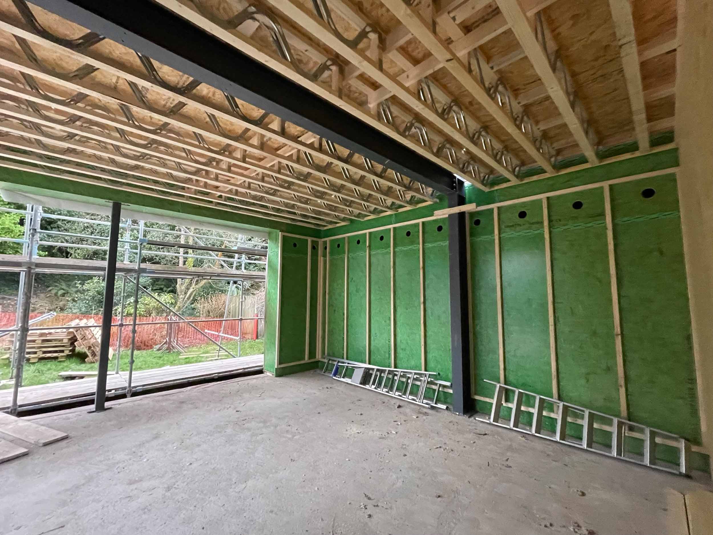 The twin stud was key to ensuring there was enough insulation to meet the passive house standard. Airtightness is provided by Smartply Propassiv OSB, rather than membranes.