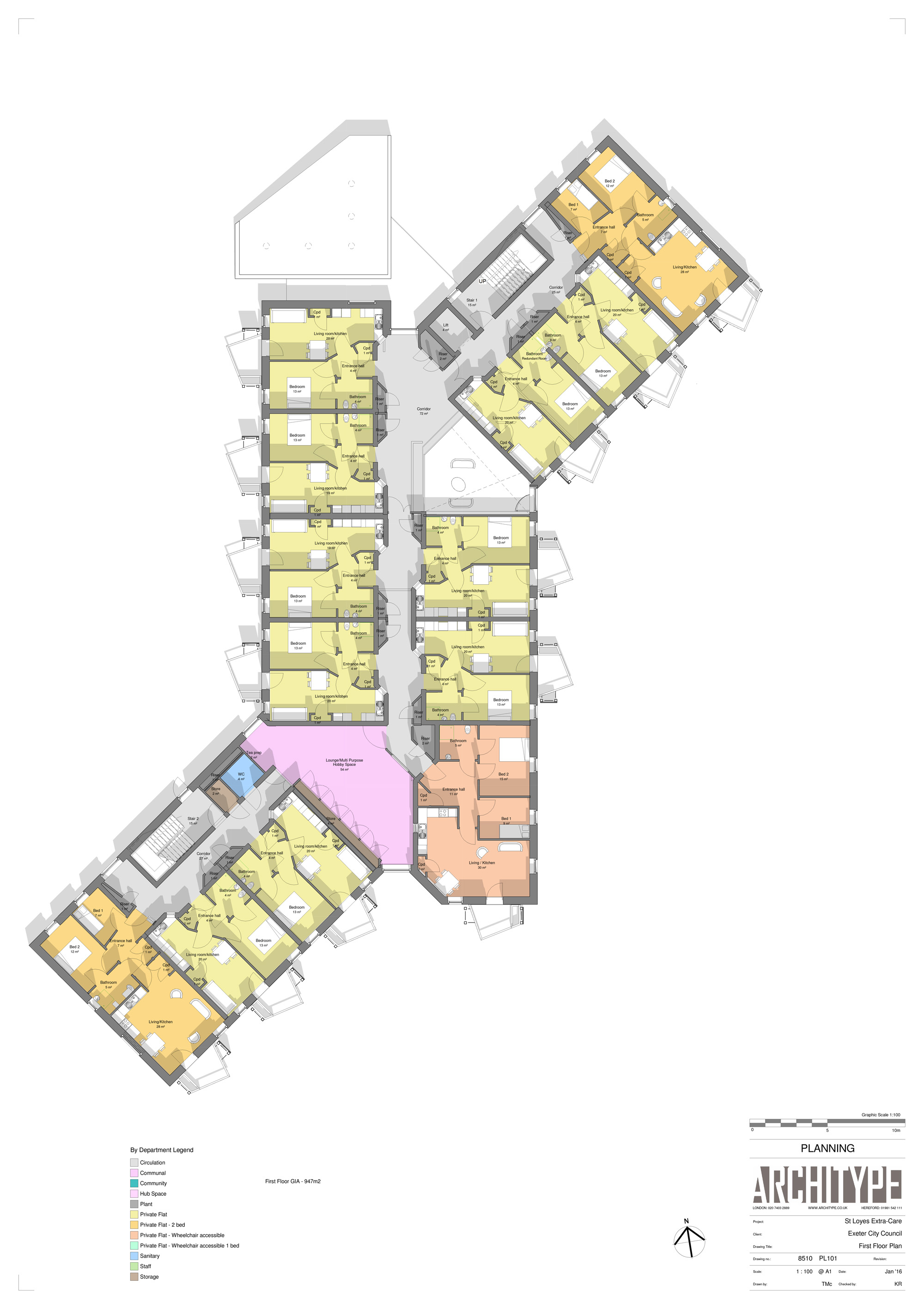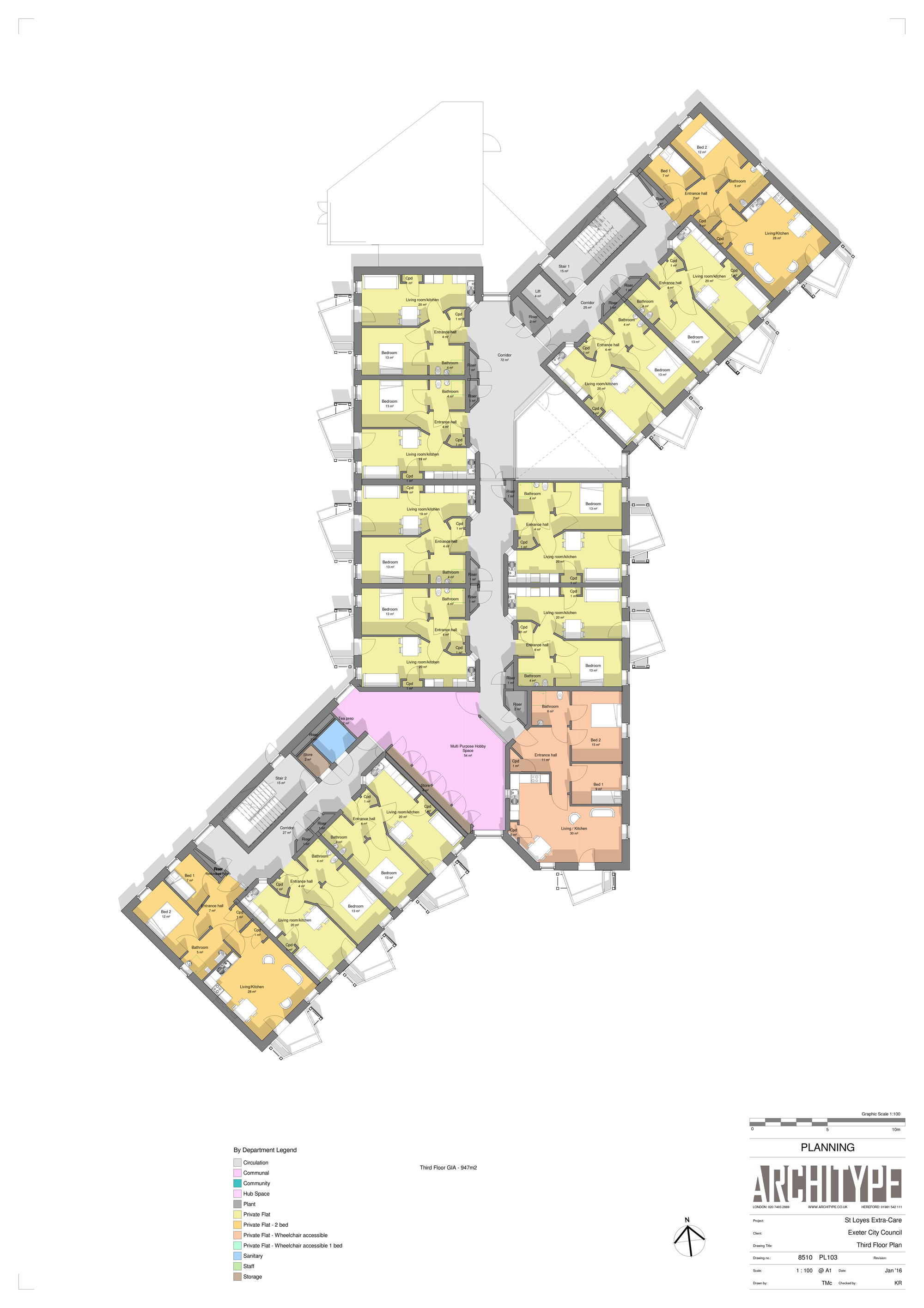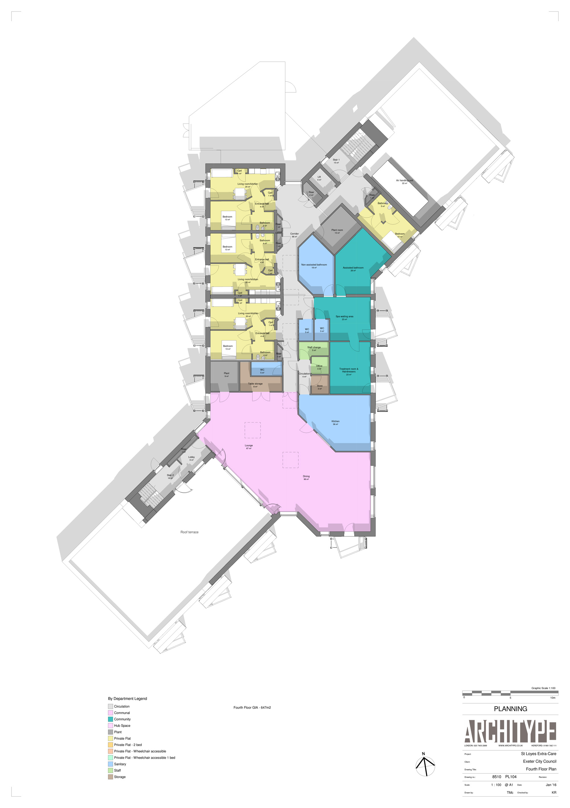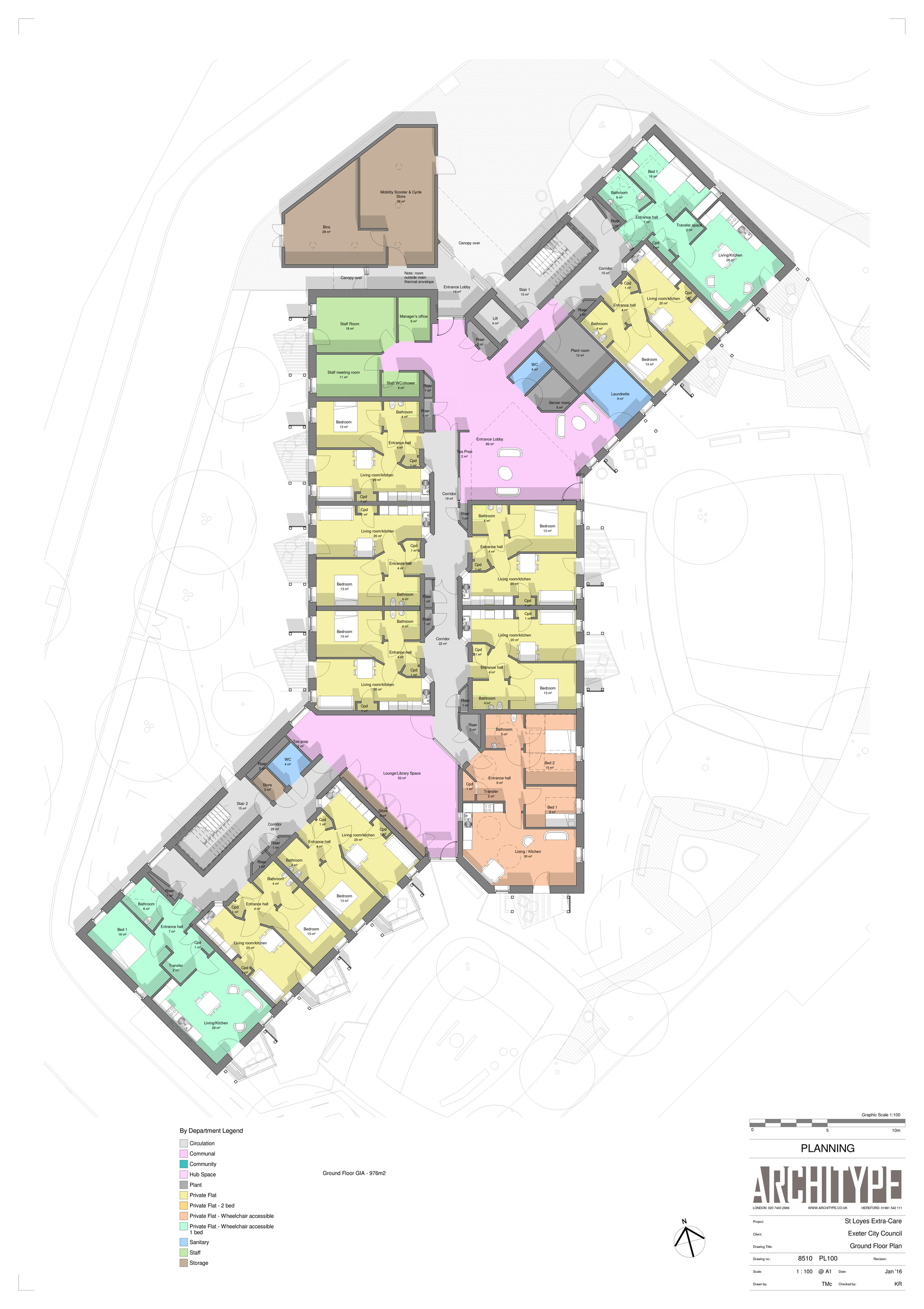 House type: 4,457 m2 care home (53 one and two-bed apartments)
