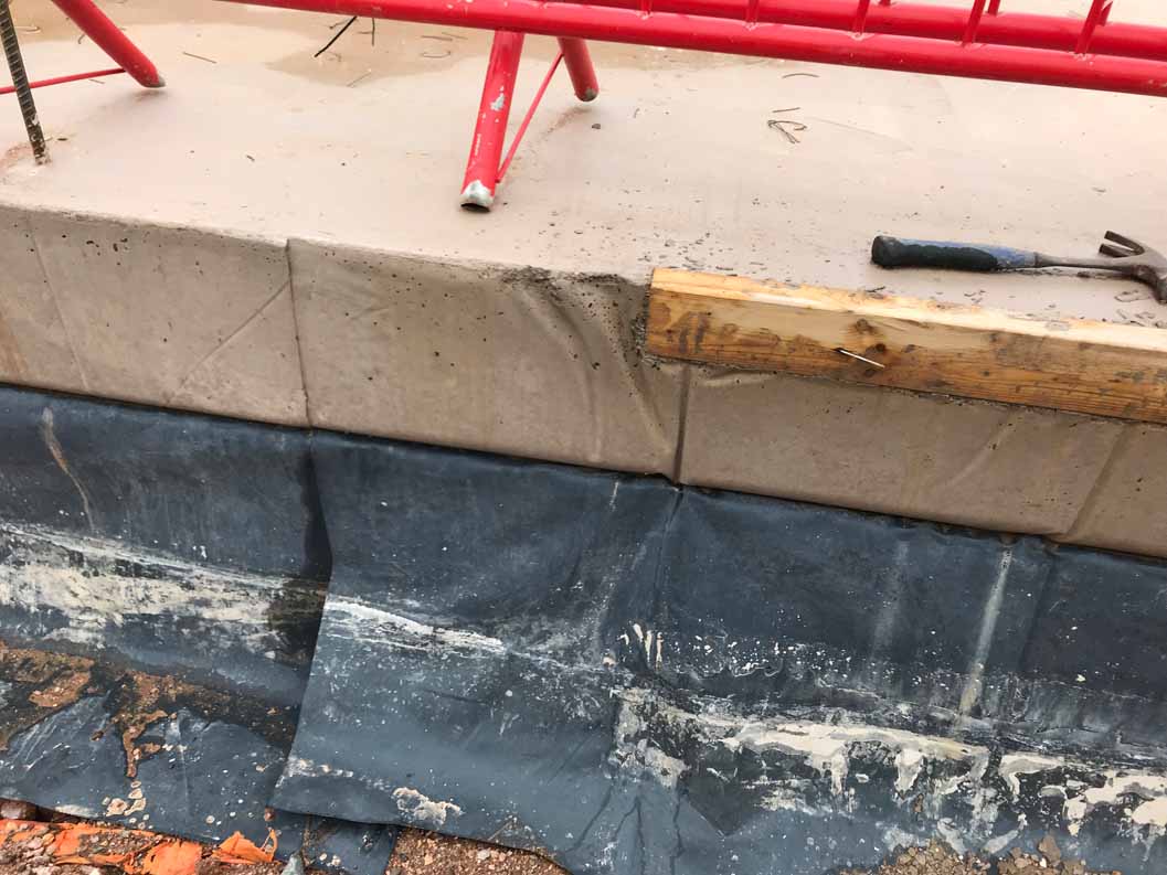 Edge of ground slab revealed after formwork removed