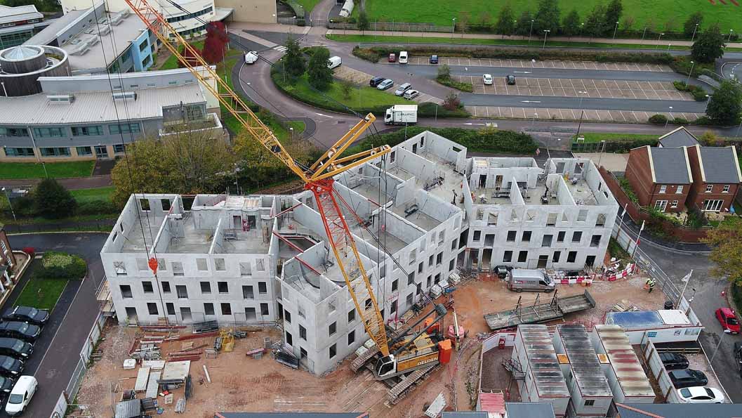 Aerial shot of the precast concrete frame erection
