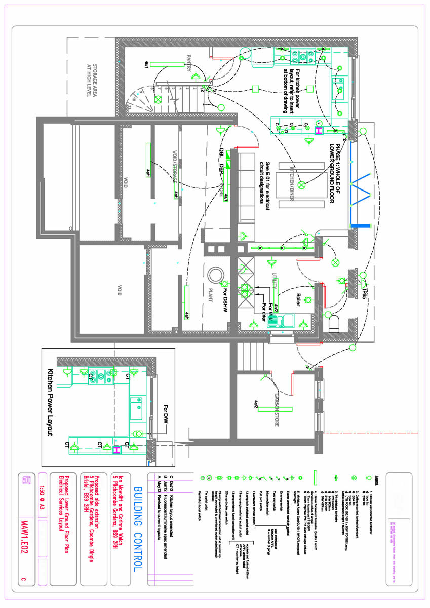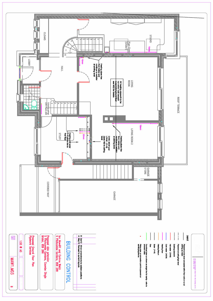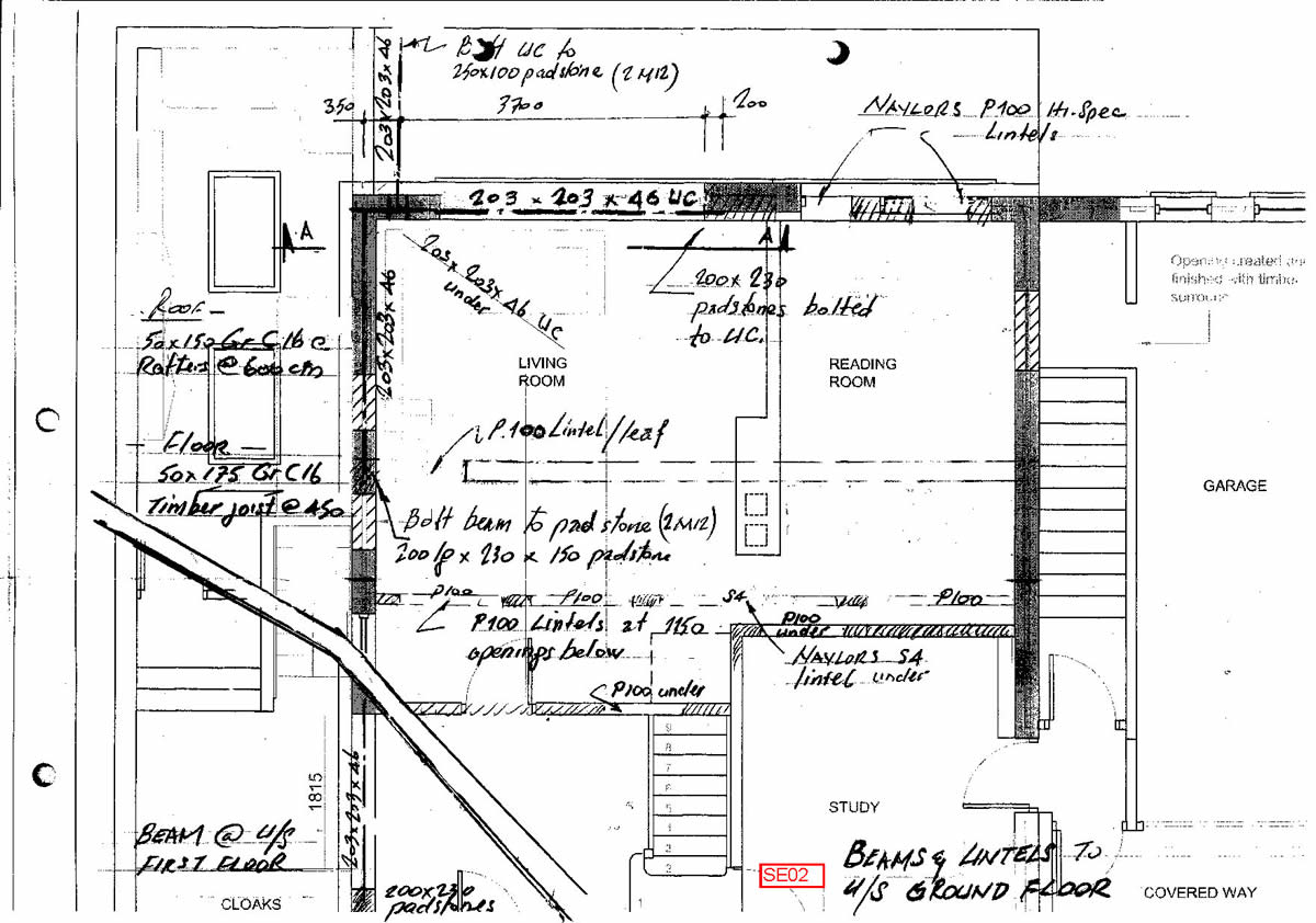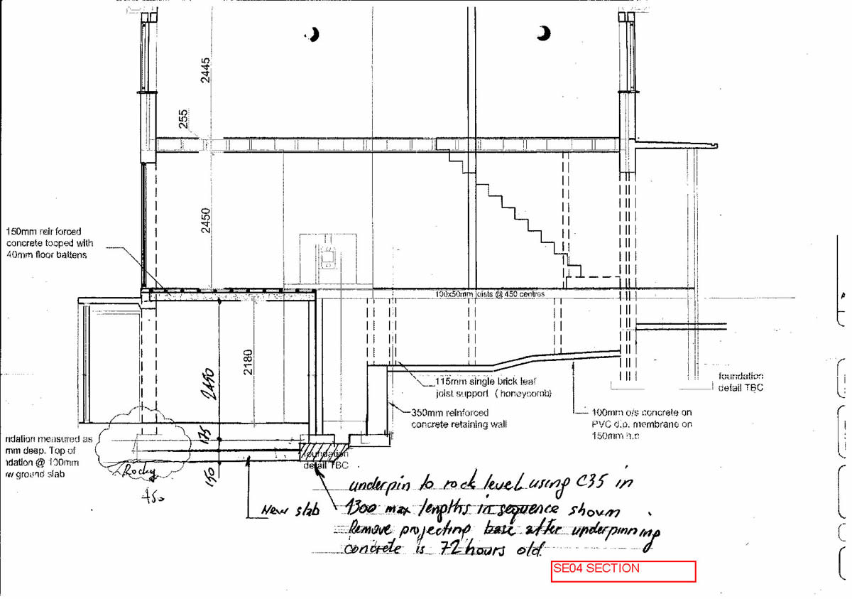 Internal wall insulation applied in some areas where special restrictions limited the ability to continue external insulation (e.g. south wall section on lower ground fl oor). Internal wall insulation used instead, limited to 100mm + cavity wall insulated with Ecobead. U-value: 0.17 W/2mK