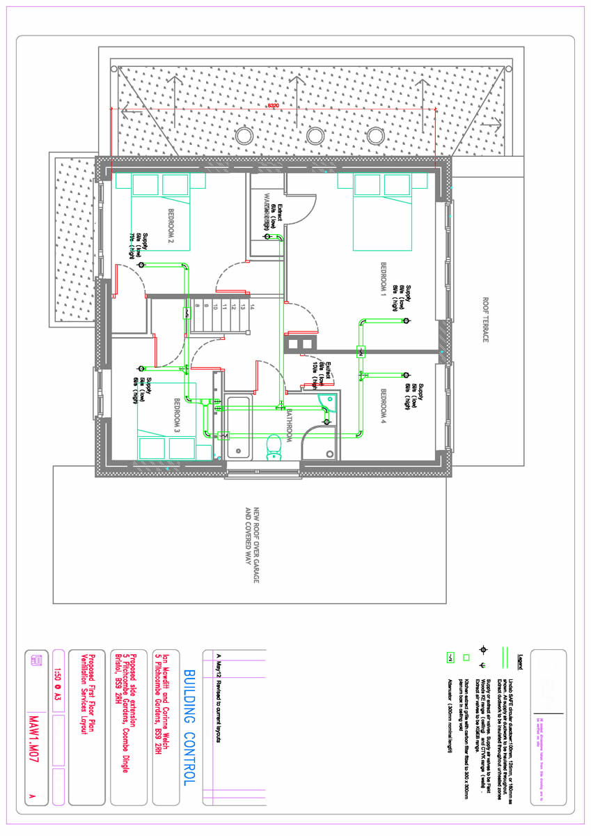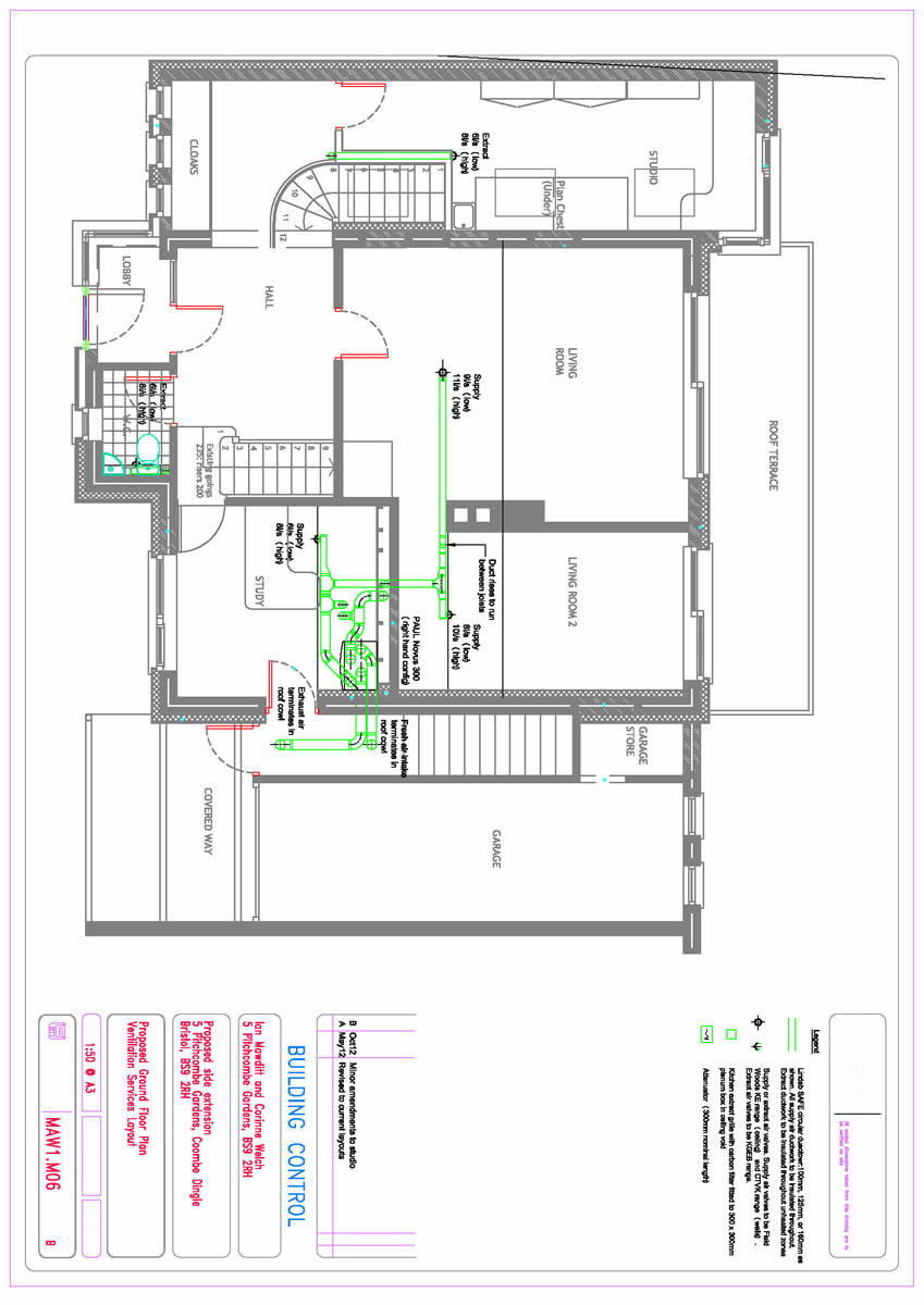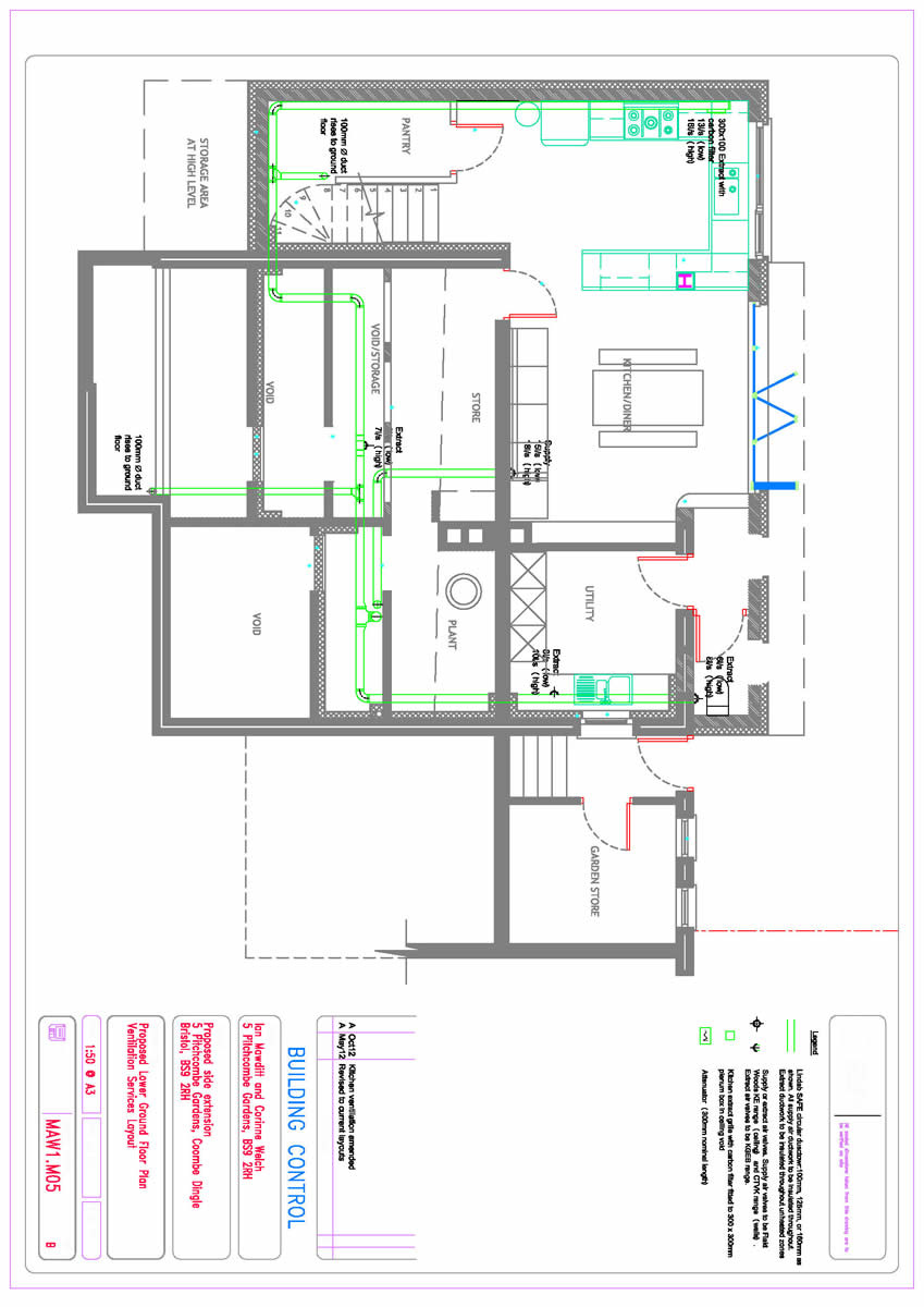 After: Paul Novus 300 heat recovery ventilation system. EN 308 certifi ed effi ciency of 94.4%. All ducting is Lindab SAFE galvanised steel – double sealed, airtight installation.