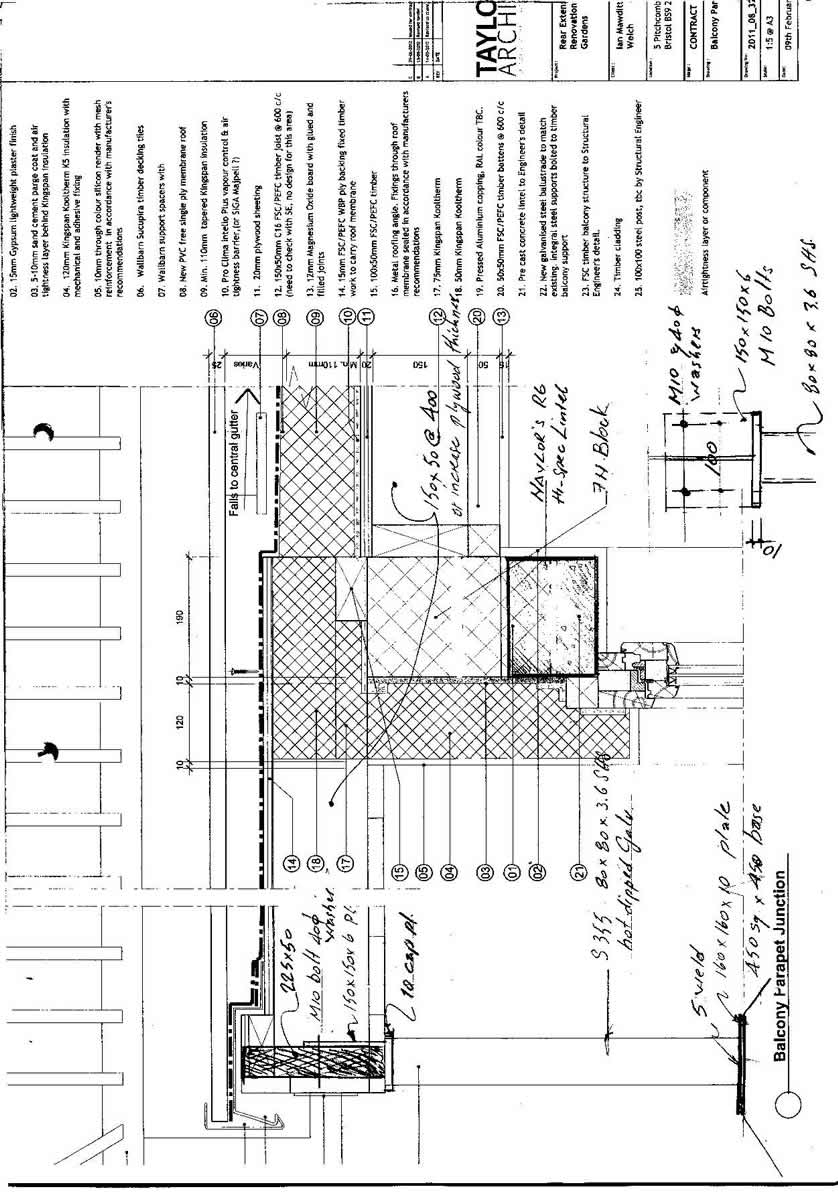 Then there was the balcony. This was an extension of the ground floor slab that extended into the external space. Left as it was, it would conduct any heat energy directly into the outside. Mawditt and Kay decided to shear it off, again, flush with the existing building, and replace it with a wooden balcony. As with the gutter, this doesn’t eliminate the thermal bridge but it does reduce the problem to an acceptable level.