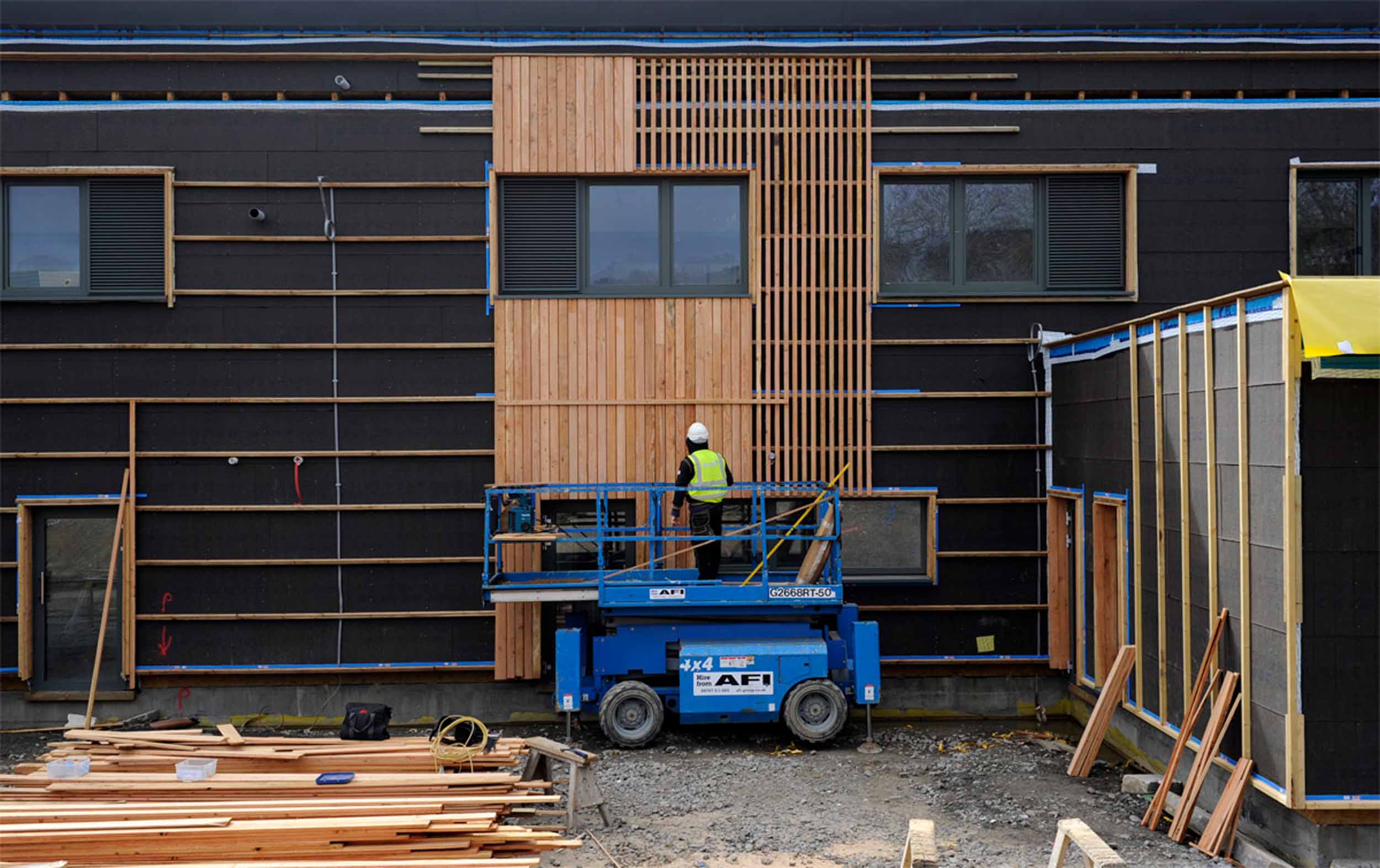 Before larch cladding was installed over the timber battens