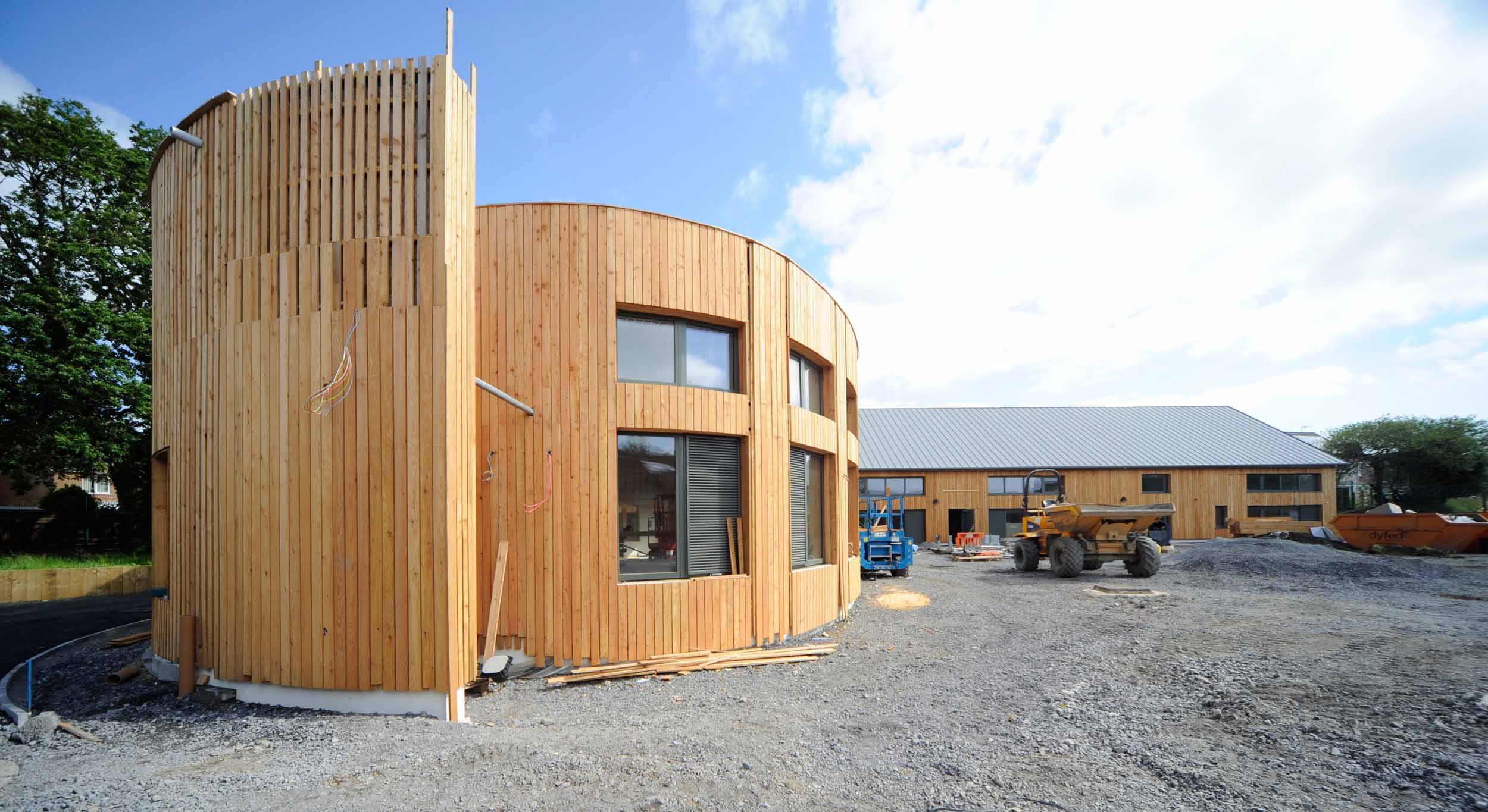 The main timber frame KS2 building at Burry Port, seen here with Hunton Sarket T&G sheathing board